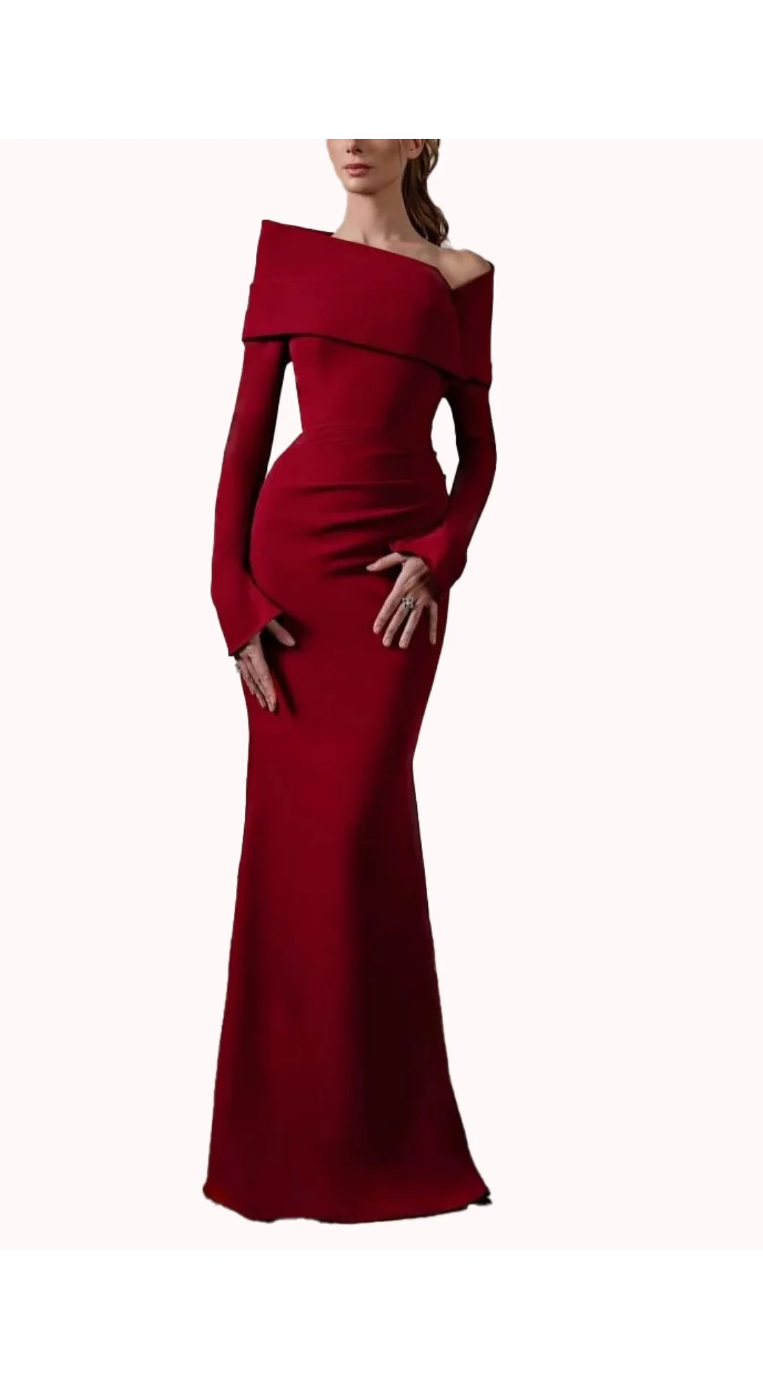aliexpress , ali , shop , ali shop , online , store , online shop , online store , buy , sell , Red off the Shoulder Evening Dress Tight Mermaid Long Sleeve Bridesmaid Dress 2025 Satin Formal Dress Pleated Corset Customized