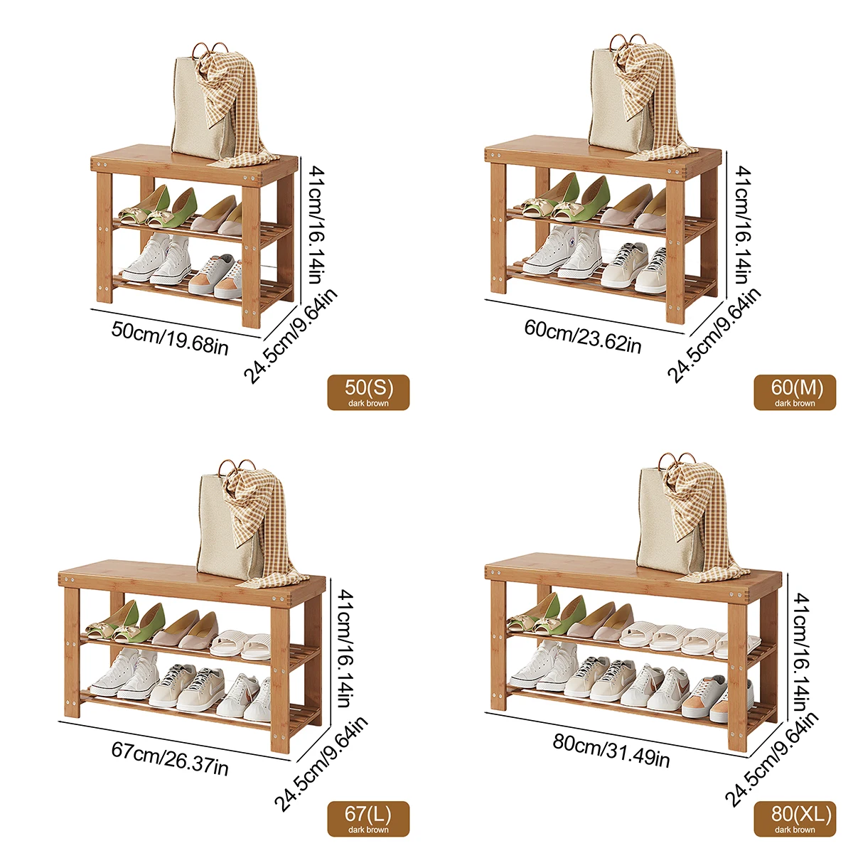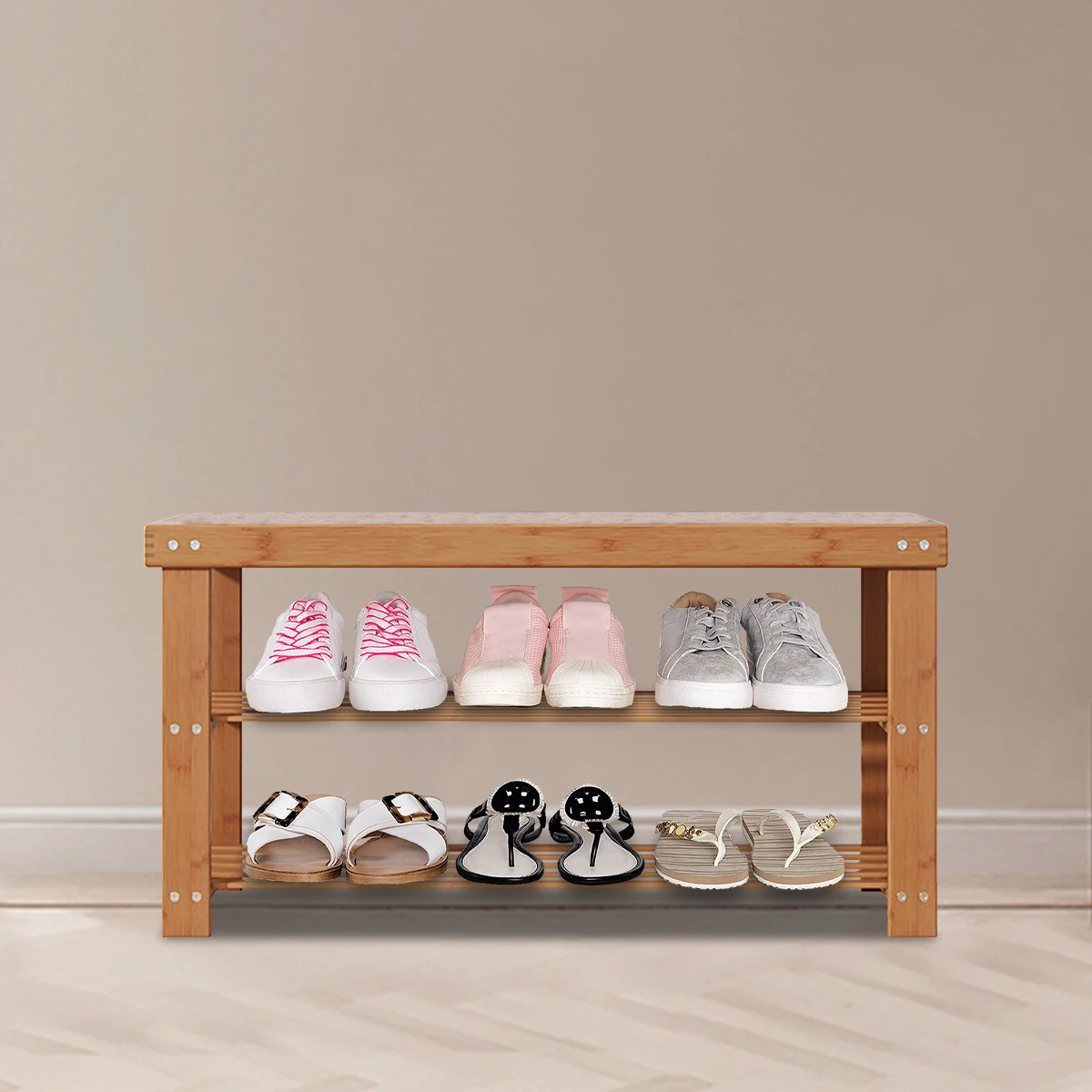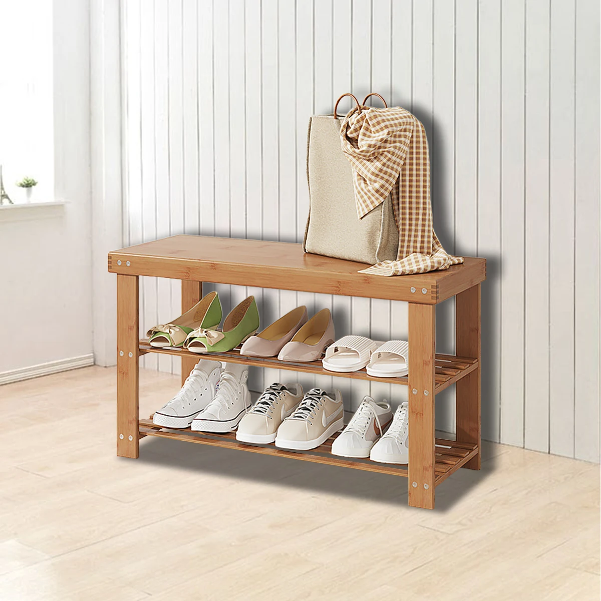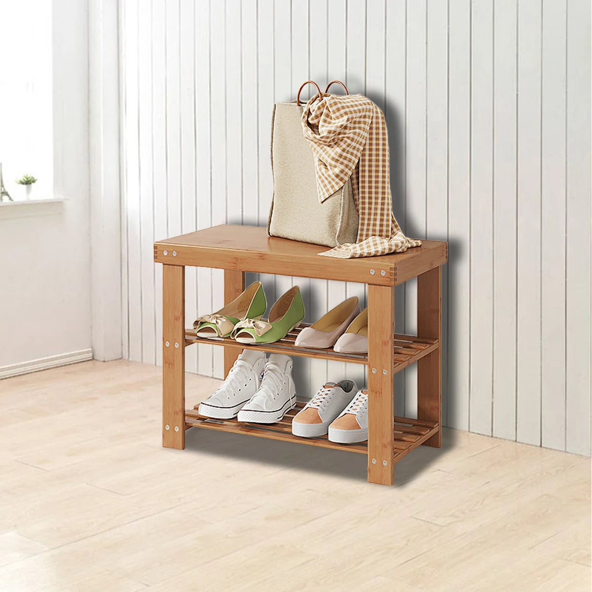 Bamboo Shoe Rack Bench - 3-tier storage for hallway, bathroom, or living room. Natural bamboo design.