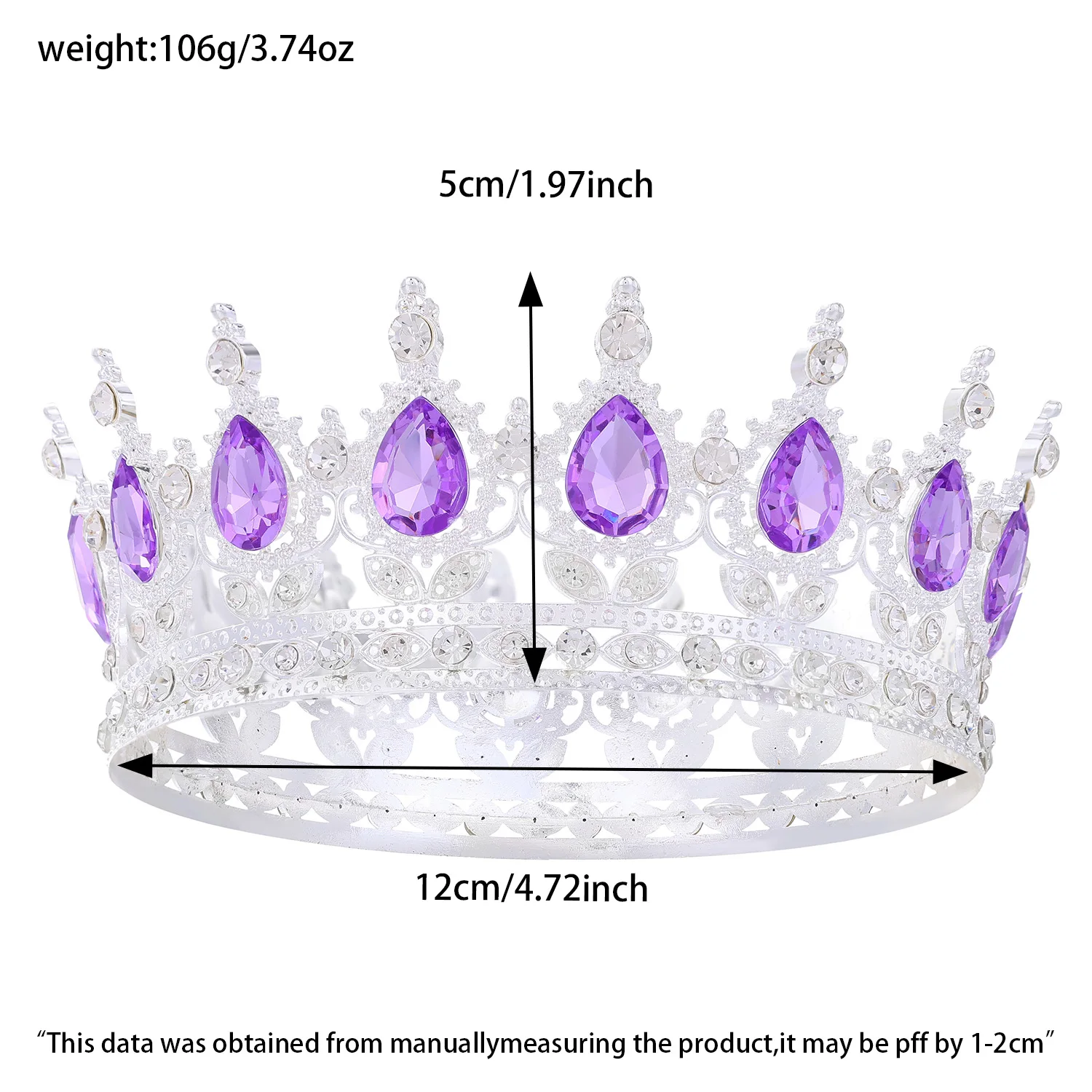 Round silver luxury crystal crown, suitable for birthday parties, cake accessories, flower accessories, holiday gifts