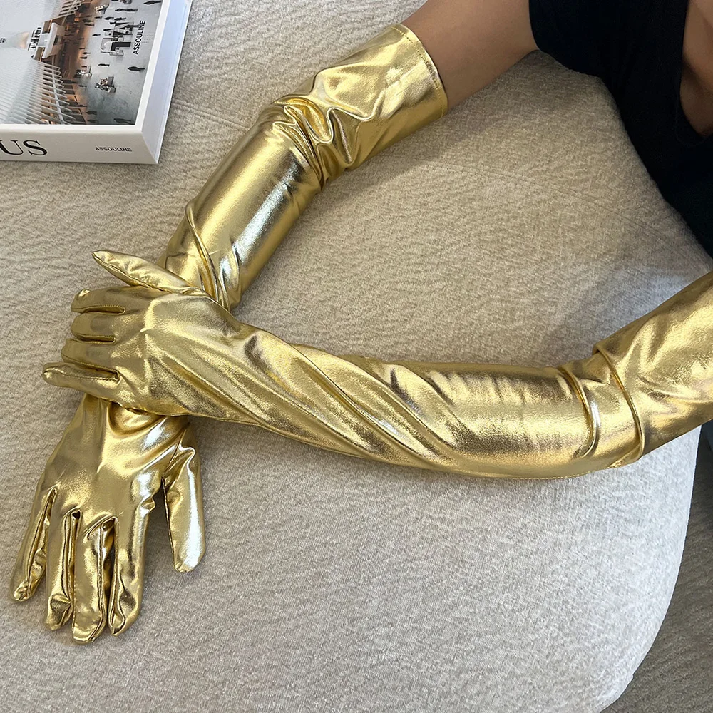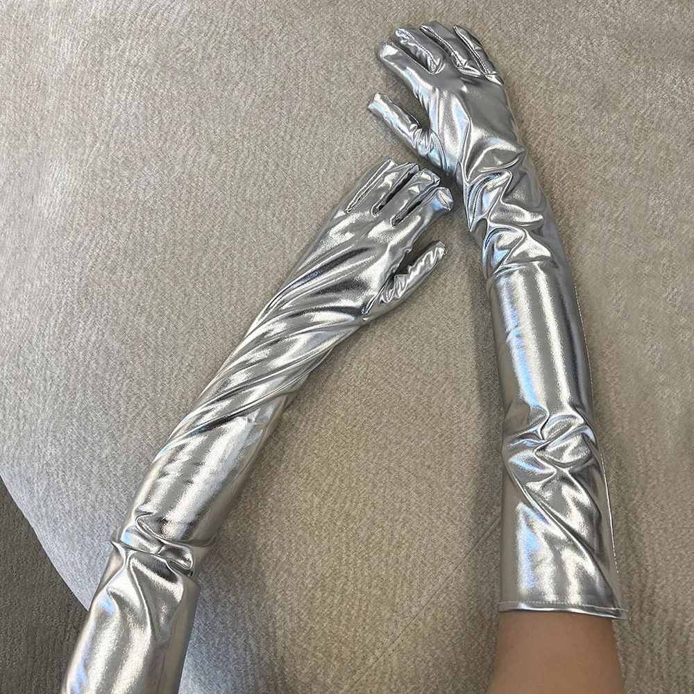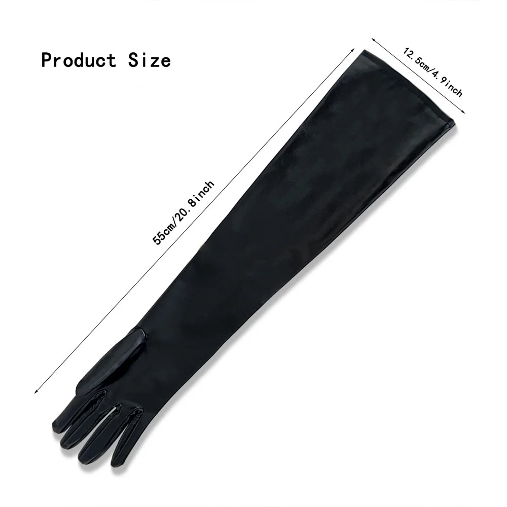 Women Patent Leather 55cm Long Gloves Cosplay Clothing Accessories Black Tight Gloves DS Pole Dance Performance Party Opera