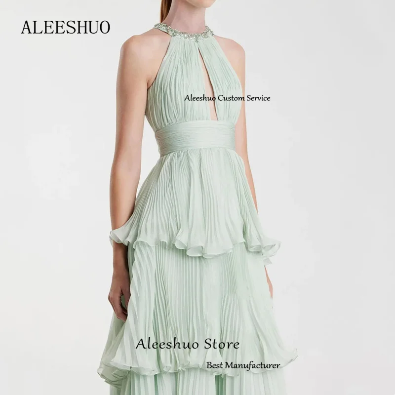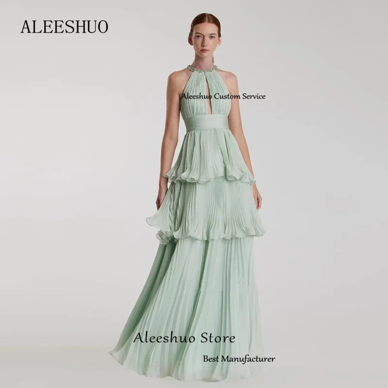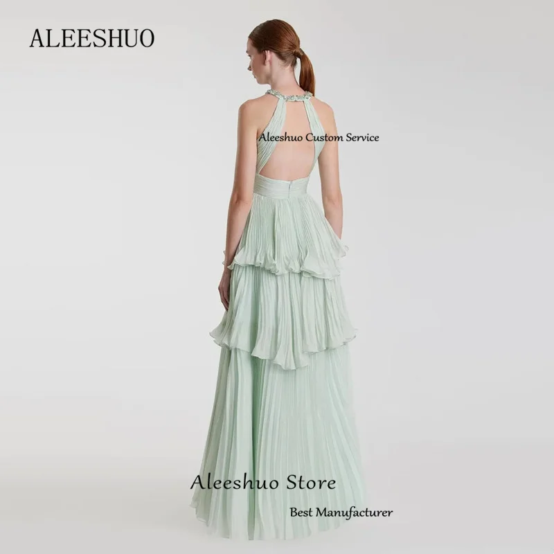Aleeshuo Modern A-Line Sleeveless Prom Dressess Simple Halter Open Back Cut-out Evening Dress فساتين سهره فاخ