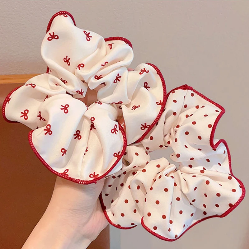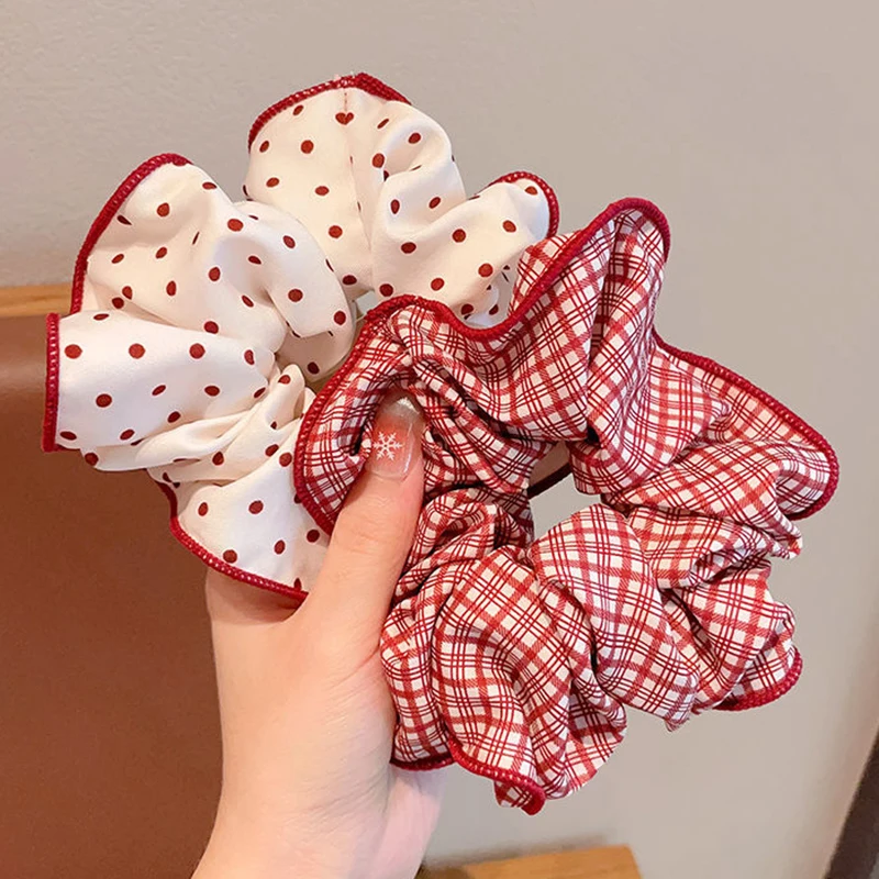 2/3pcs High End Red Cute Dot Plaid Scrunchies for Women Girls Soft Elastic Hair Ties Gentle Hair Bands Fashion Hair Accessories