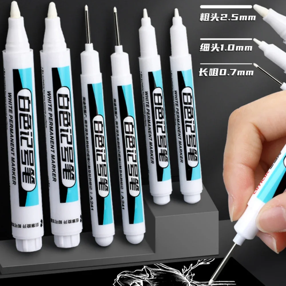 White Marker Pens 0.7/1.0/2.5mm Waterproof Oily Permanent Paint Pen Markers for Wood Rock Plastic Leather Glass Metal Ceramic