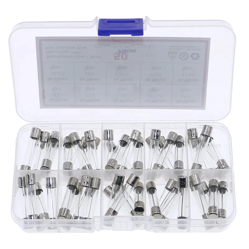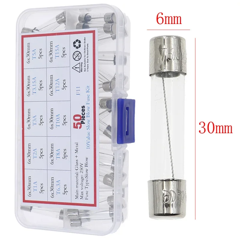 50Pcs 10Value 6x30mm T1A 2A 3A 3.15A 5A 6.3A 8A 10A 12A 15A slow Blow Glass Tube Fuse Assorted Kits