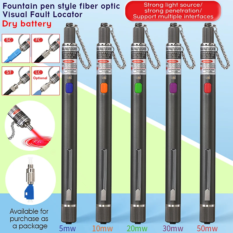 5/10/20/30/50MW VFL Pen Type Visual Fault Locator High Quality Fiber Optic Cable Tester 2.5MM(SC/FC/ST) Interface FTTH Tool