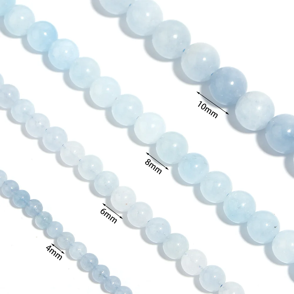 1 Strand 4/6/8mm Natural Aquamarines Stone Beads Blue Round Gemstone Bead for Jewelry Making DIY Bracelet Necklace Accessories