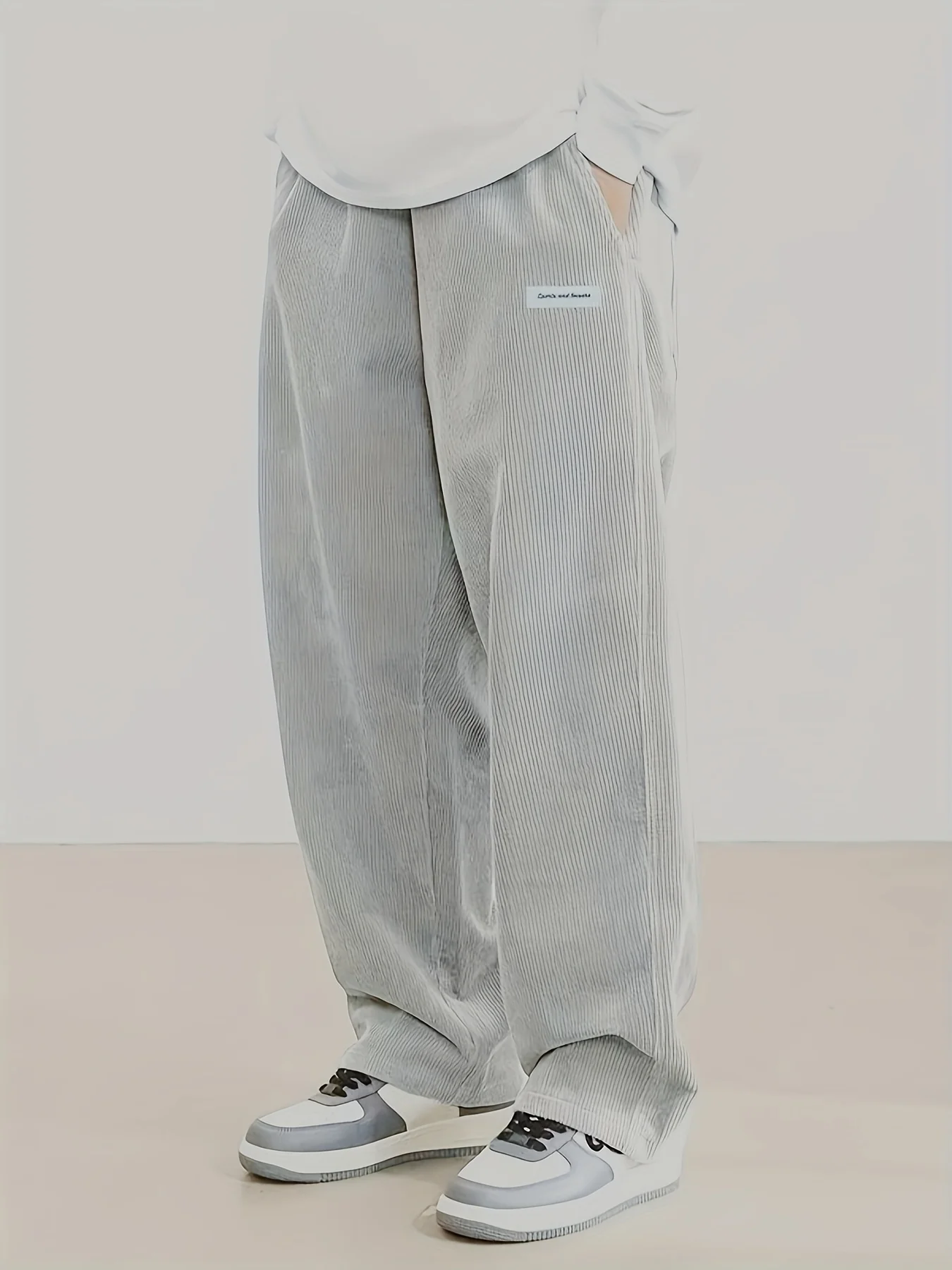 Men's corduroy loose European size hanging multi-functional casual straight leg pants, suitable for daily travel