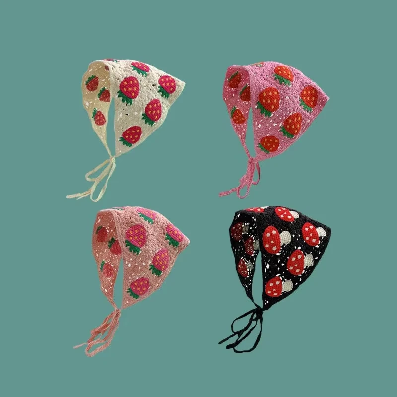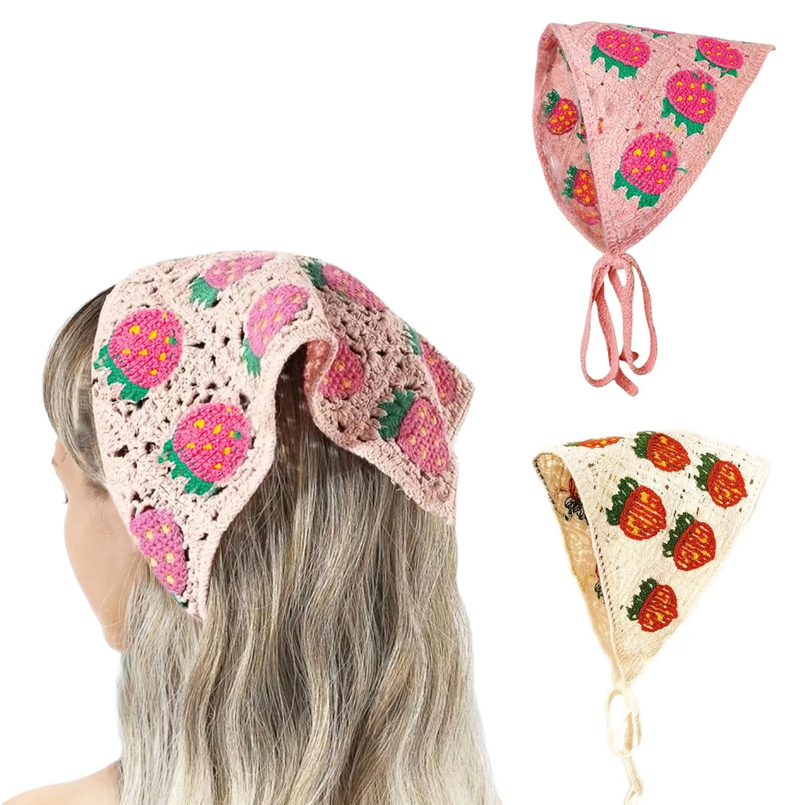 Korean Sweet Cute Handmade Crochet Hollow Triangle Headband Towel For Women Girls Flower Headscarf Hair Accessories