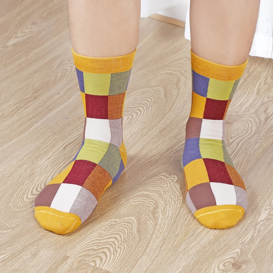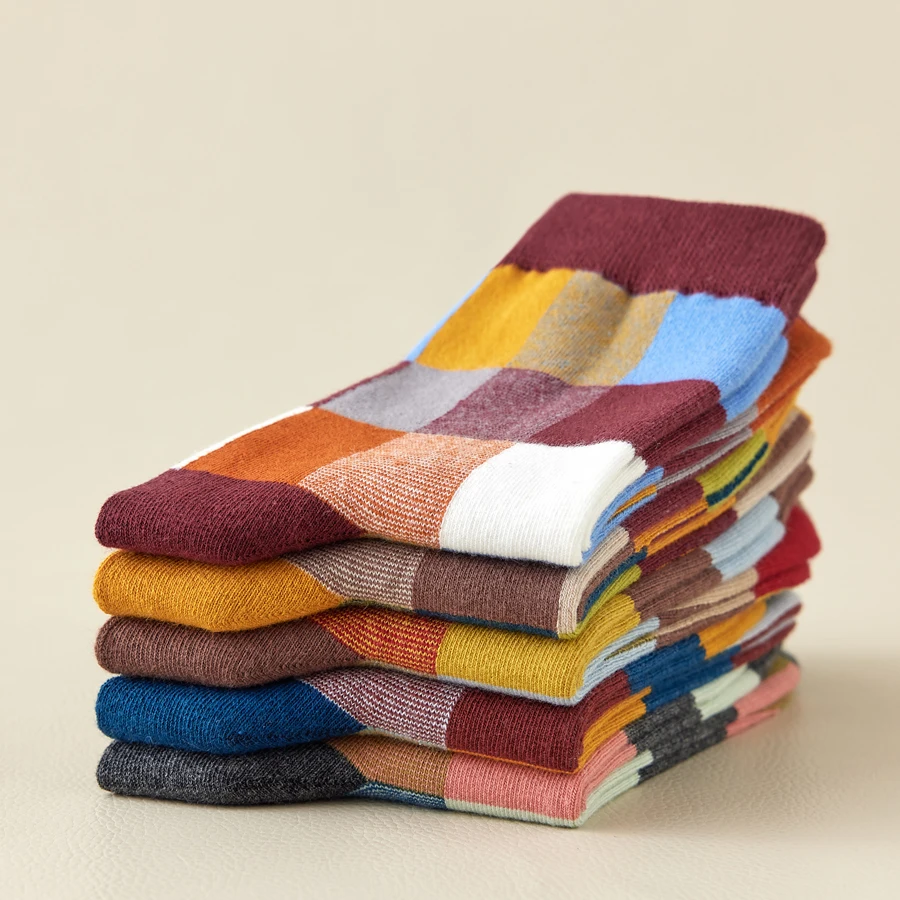 5 Pairs Combed Cotton Men's Socks Outdoor Party Compression Socks Fashion Colorful Square And Stripe Happy Dress Socks Men