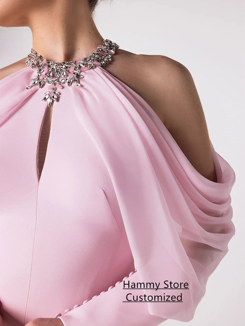 aliexpress , ali , shop , ali shop , online , store , online shop , online store , buy , sell , Sexy Mermaid Evening Dress Vestidos De Fiesta Customized Halter Long Sleeves Buttons Pink Prom Gown Slit Party Dresses