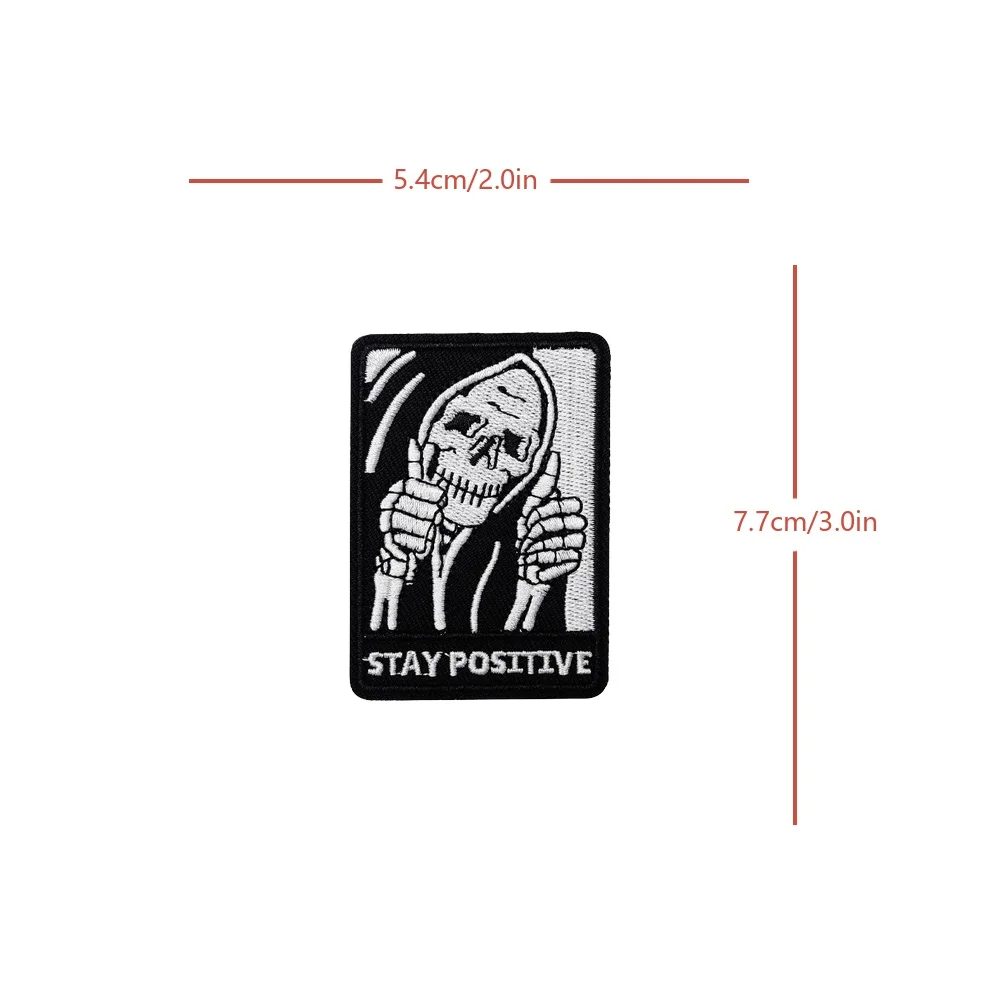 Stay Positive Skull Velcros Tactical Patch Morale Fun Meme Quote Hook Loop Fastener Sticker Badge For Backpack Cap Molle Jeans