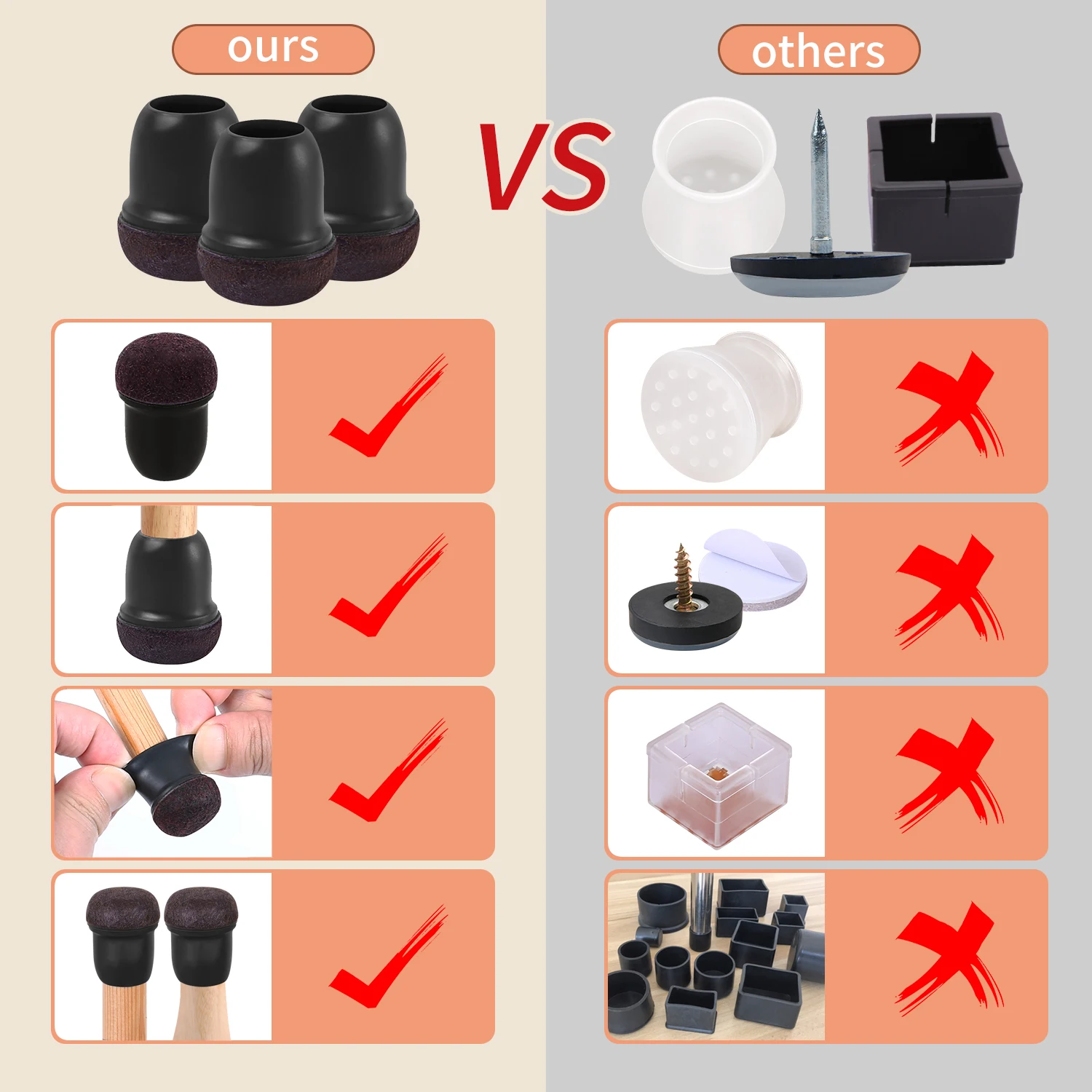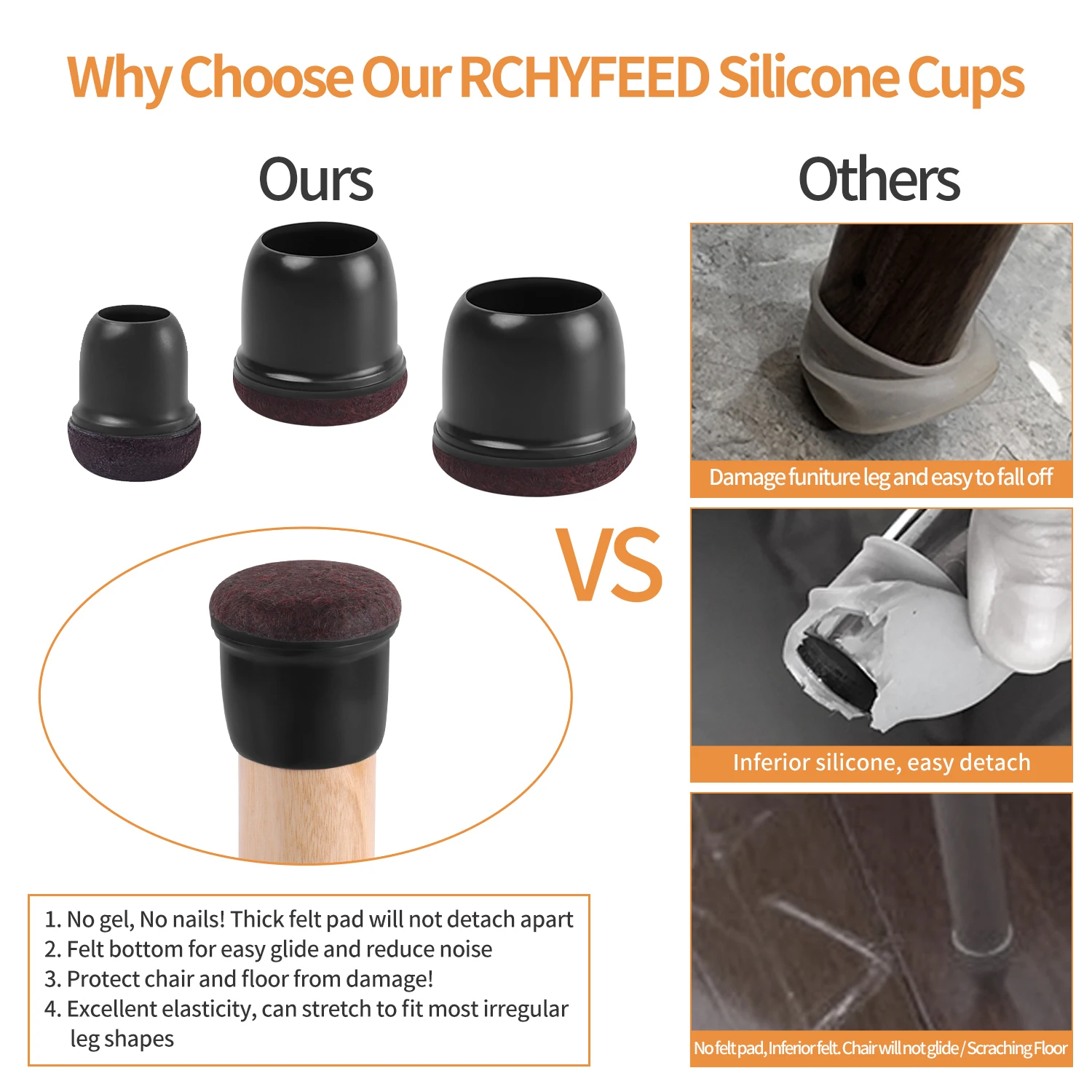 8PCS Upgraded Chair Leg Covers Silicone Anti-Slip Felt Furniture Feet Protectors from Scratches for Hardwood Floor Reduce Noise