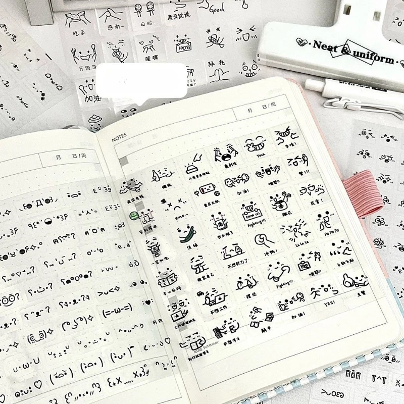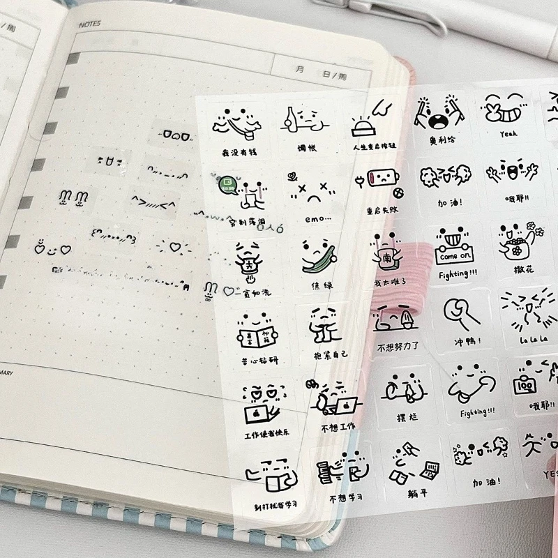 10pcs Random Cute Expression Scrapbook Sticker Korean Fashion Transparent Emoticon Journaling Sticker DIY Decor Sticker Kid Gift