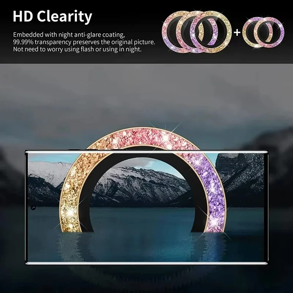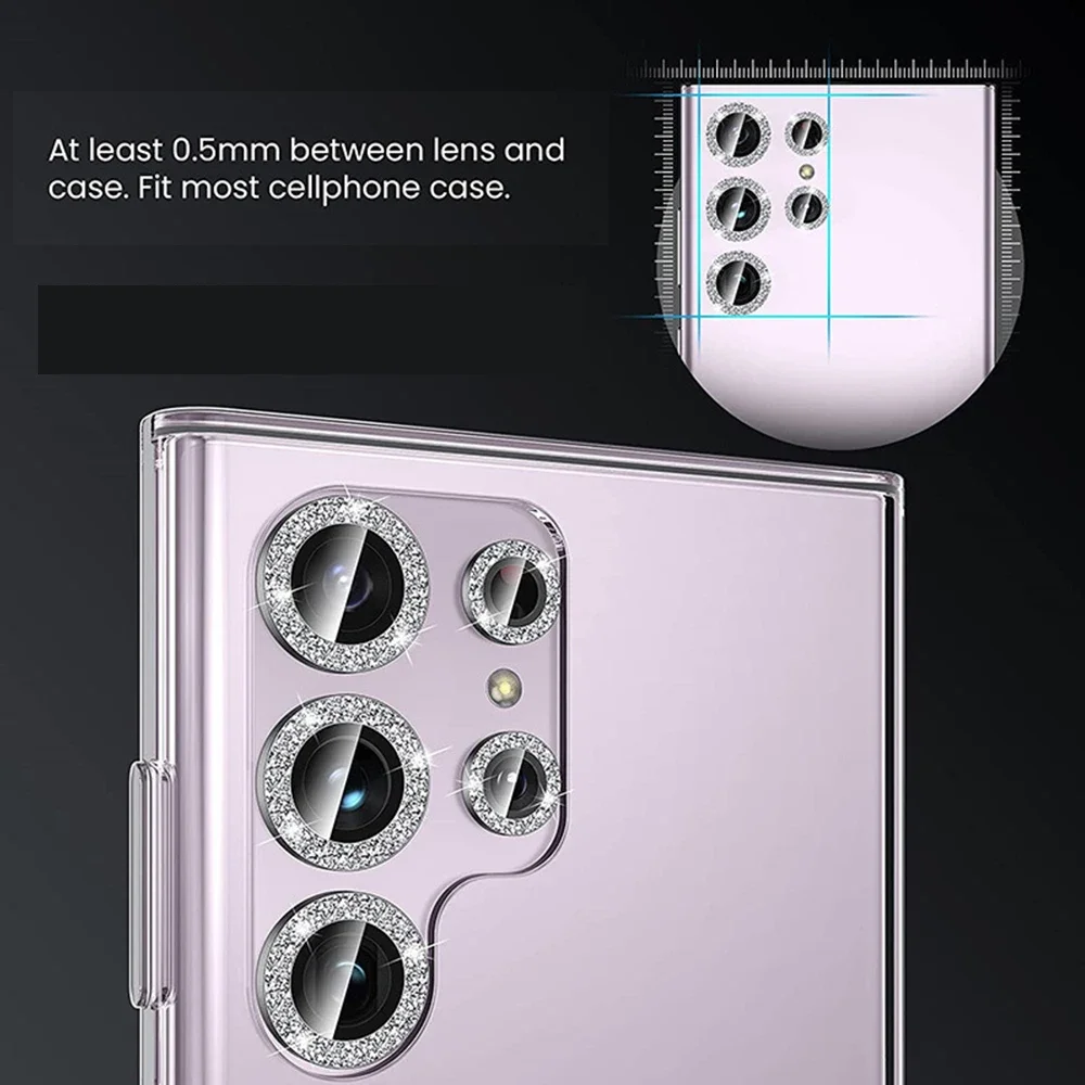 For Samsung Galaxy S24 Ultra HD Glitter Diamond Metal Ring Camera Glass Lens Protector For Samsung S25 Ultra S24 Plus Lens Film