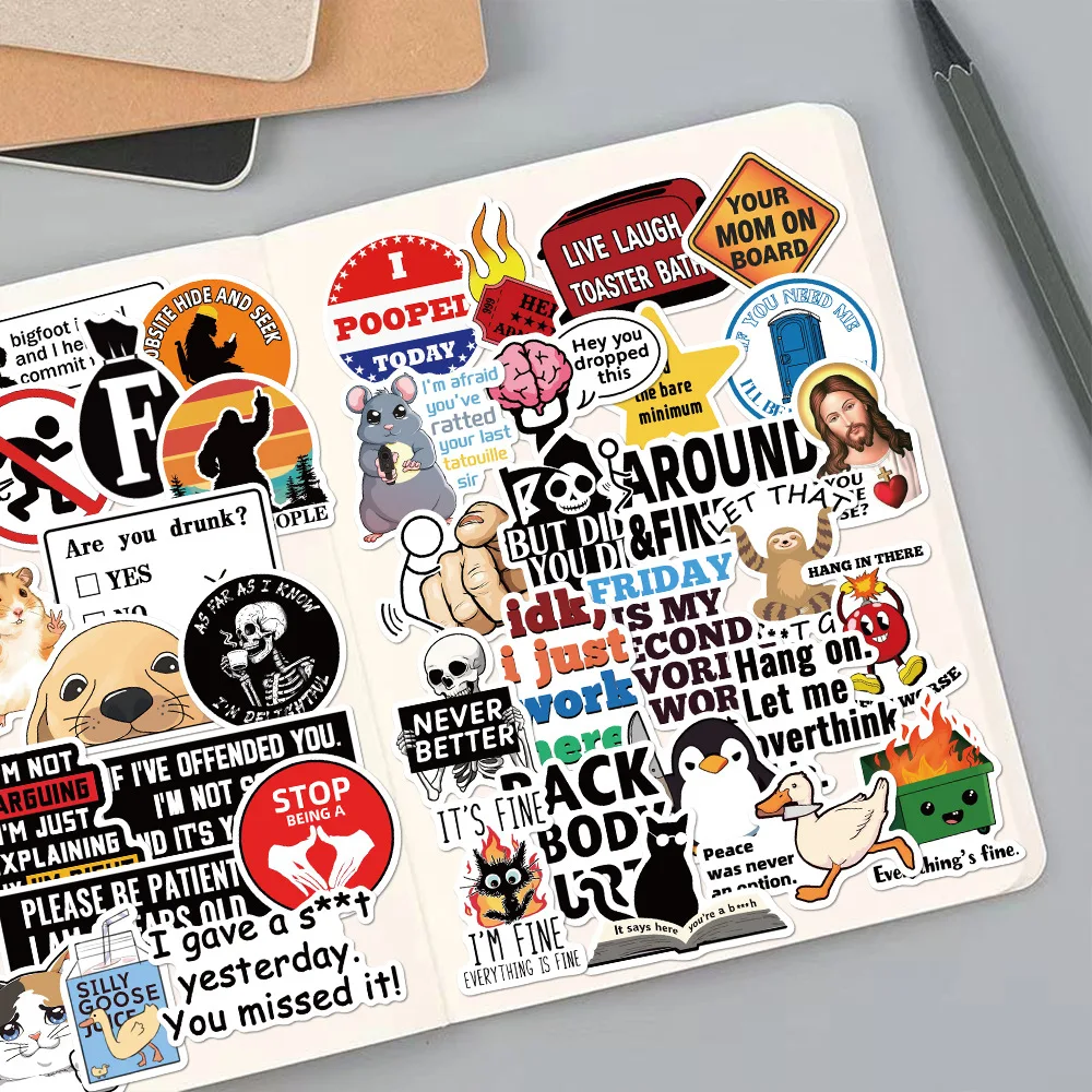 50PCS Prank Meme Stickers Harajuku Decals DIY Fashion Graffiti Decals Luggage Notebook Bike Gift Phone Laptop Suitcase Stickers