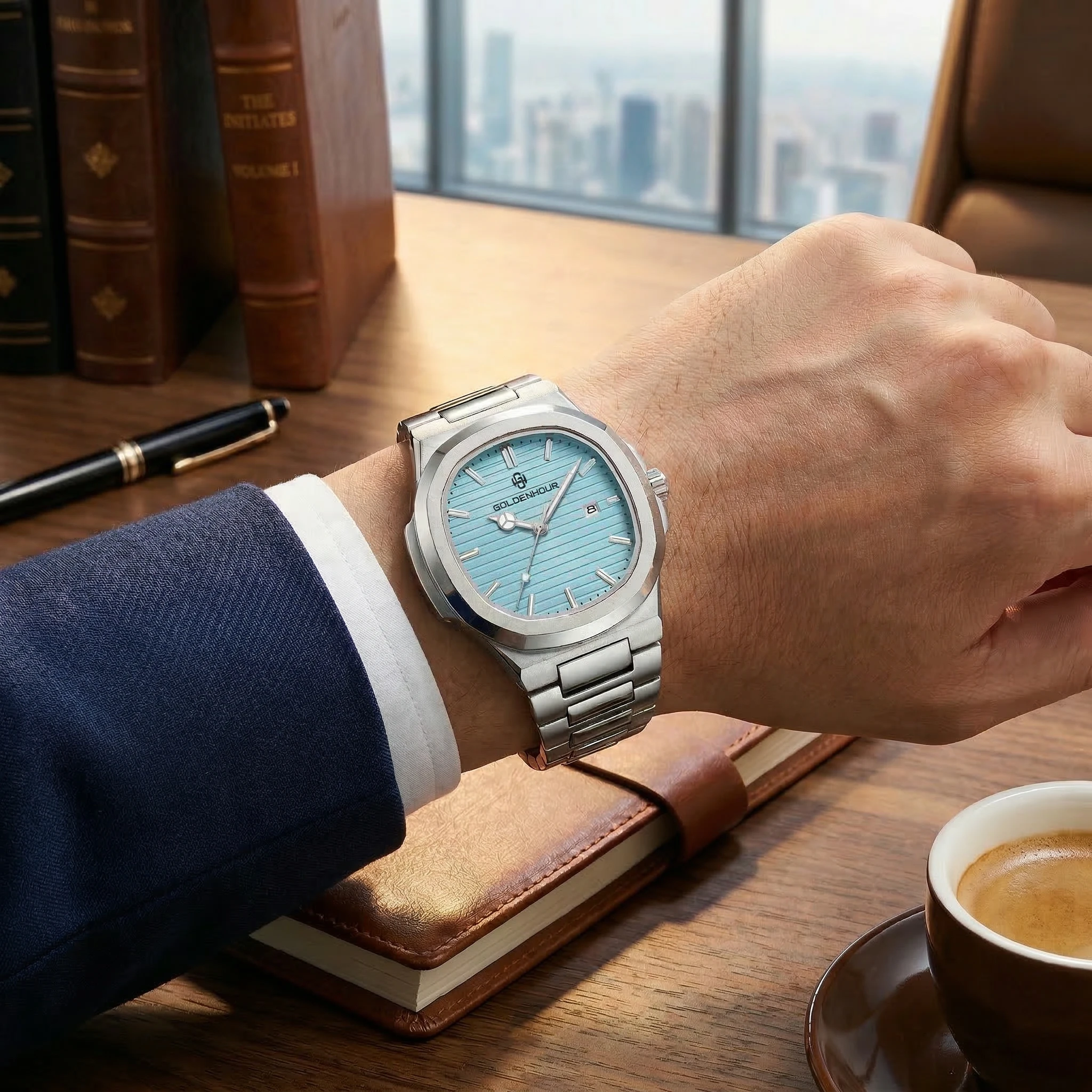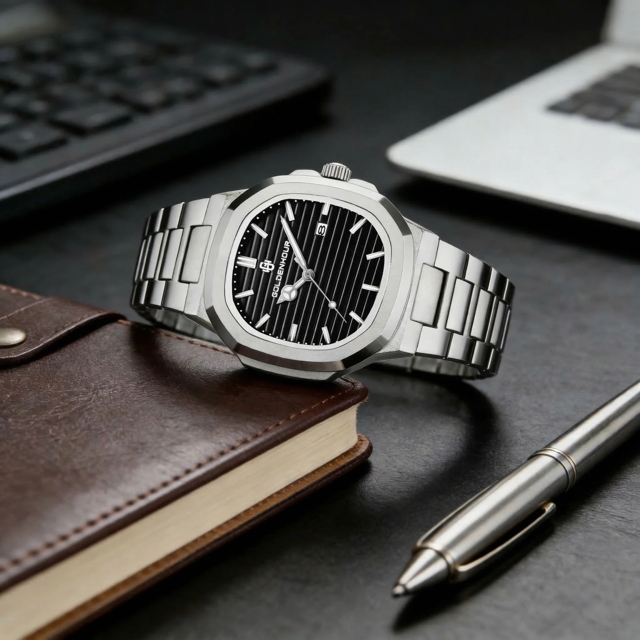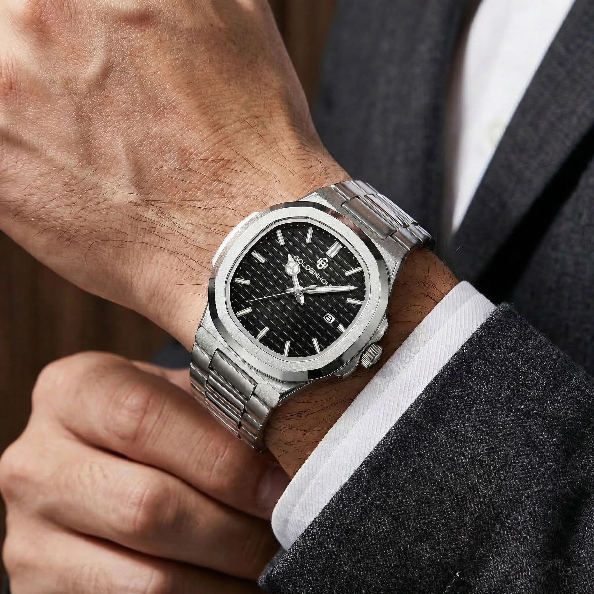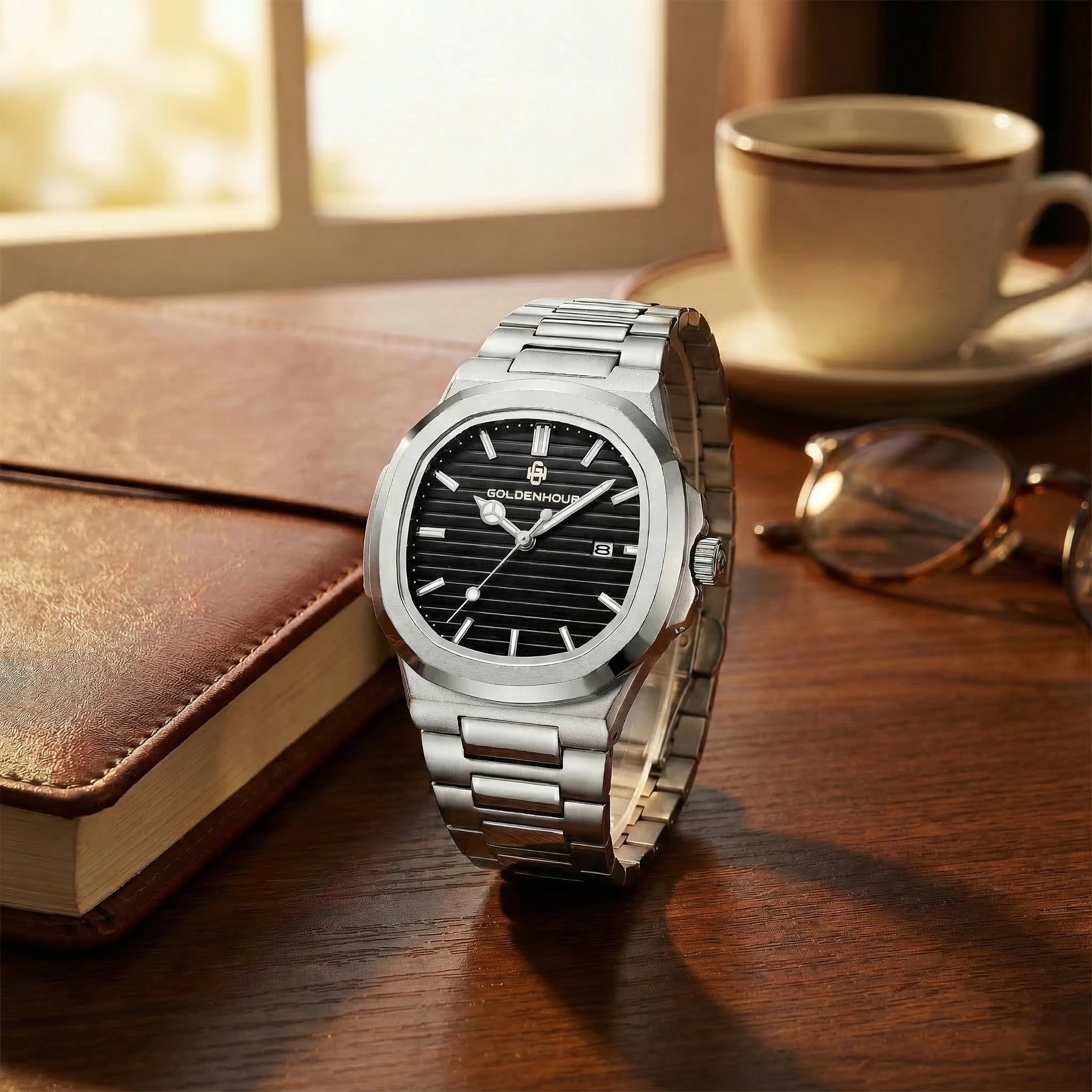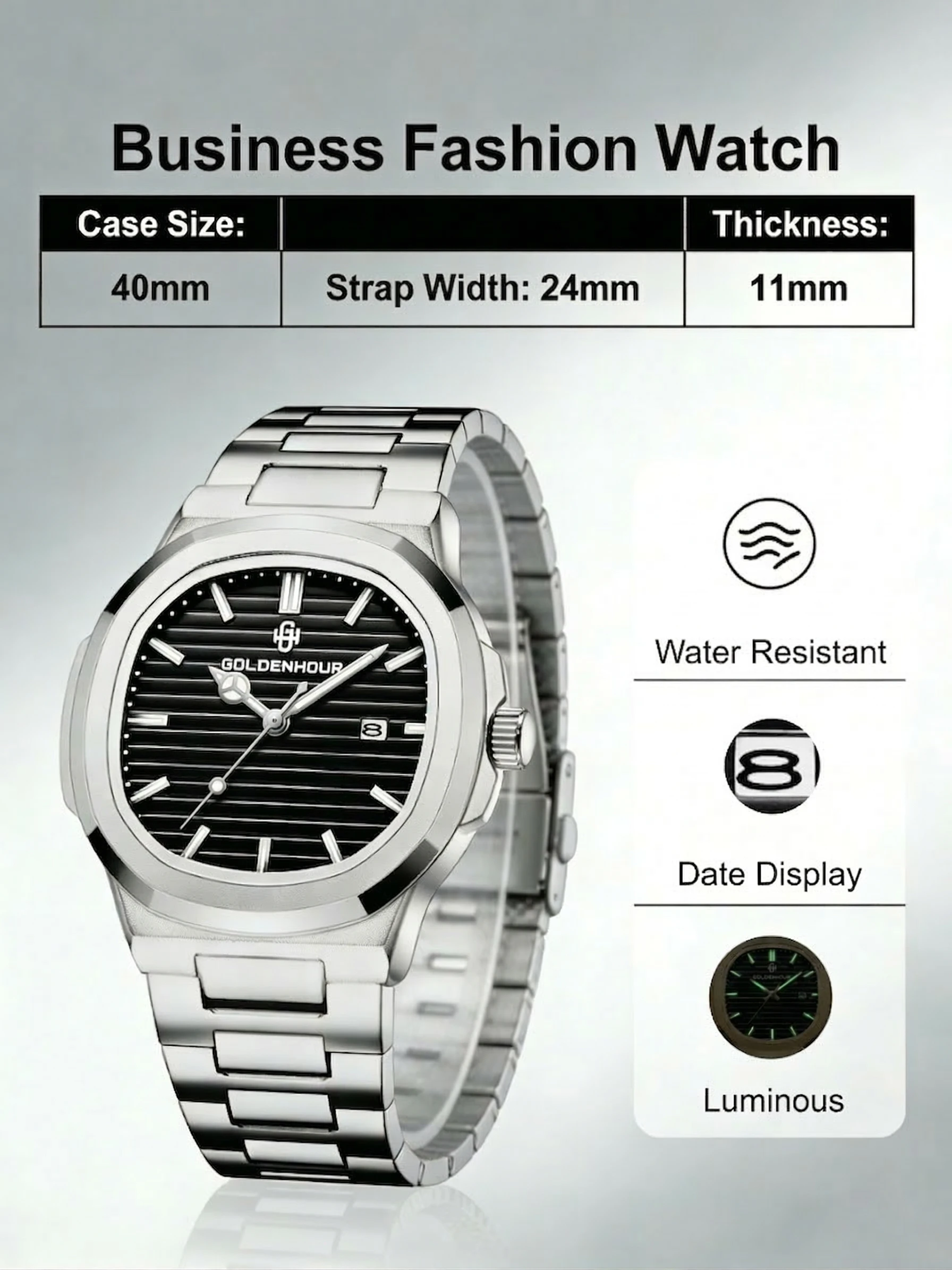 GOLDEN HOUR Fashion Men Watch Top Brand Luxury Business Quartz Watch Steel Waterproof Luminous Male Wristwatch Reloj Hombre New