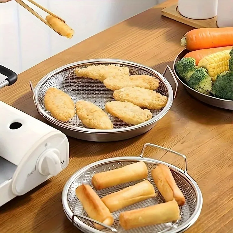 WORTHBUY Stainless Steel Filter Tray,Reusable Round Mesh Basket,Frying Grilling,Kitchen Strainer,Fruit vegetable water filter ba