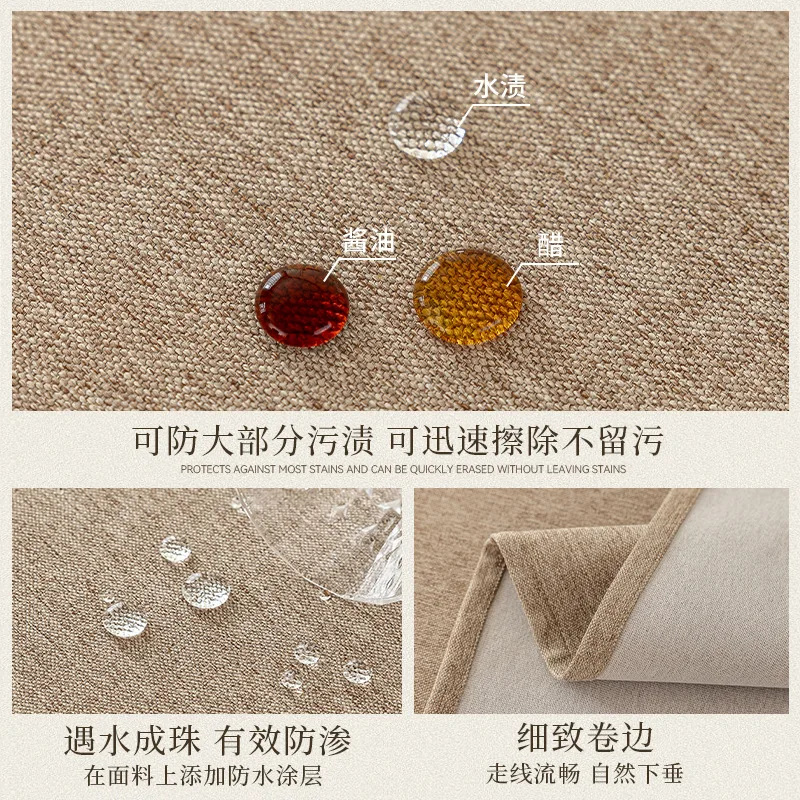 Cotton and Linen Three-proof Tablecloth Waterproof and Dustproof Solid Color Rectangular Tablecloth Coffee Dining Table Cloth