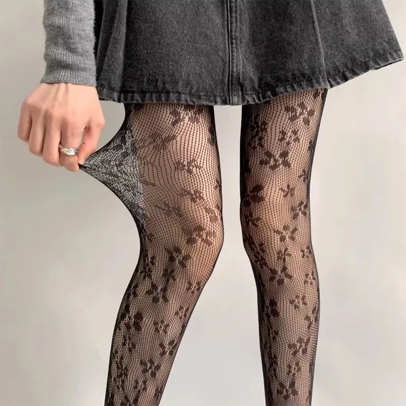 aliexpress , ali , shop , ali shop , online , store , online shop , online store , buy , sell , New Floral Pattern Brown Fishnet Pantyhose Women Sexy Coffee Hollow Out Mesh Tights Y2k Lolita Nylon Transparent Lace Stockings