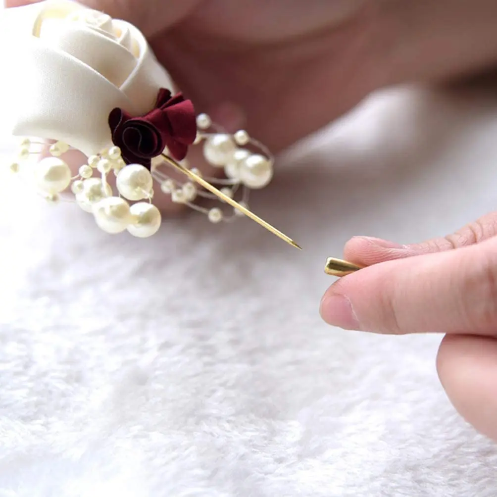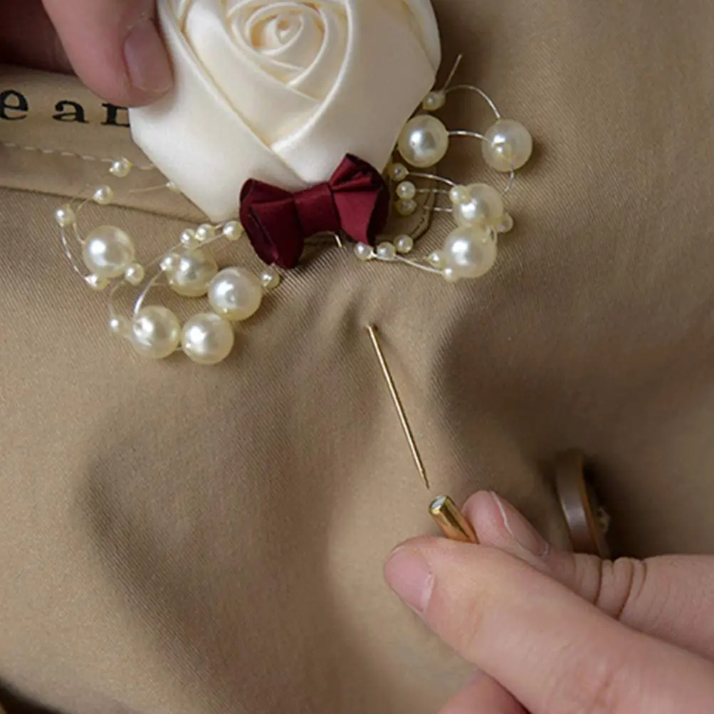 Boutonnieres Flowers Artificial Roses Fake Pearl Ivory Corsage Buttonhole Groomsmen Boutonniere for Men Wedding Accessories