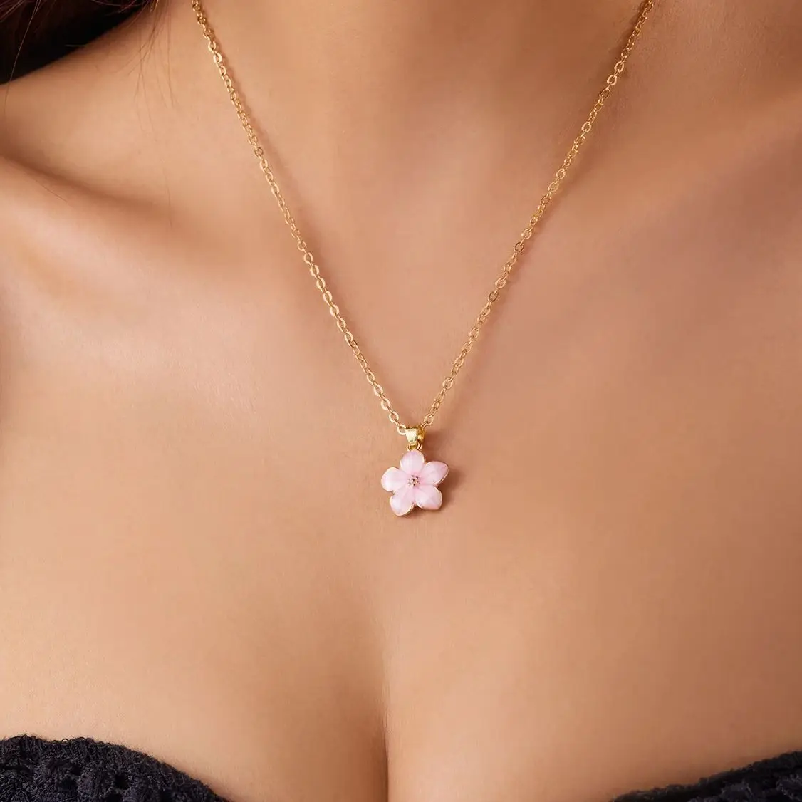 Minimalist Colorful Flower Necklace for Women Romantic Pink Cherry Pendant Necklace Make a Wish Paper Card Friendship Jewelry