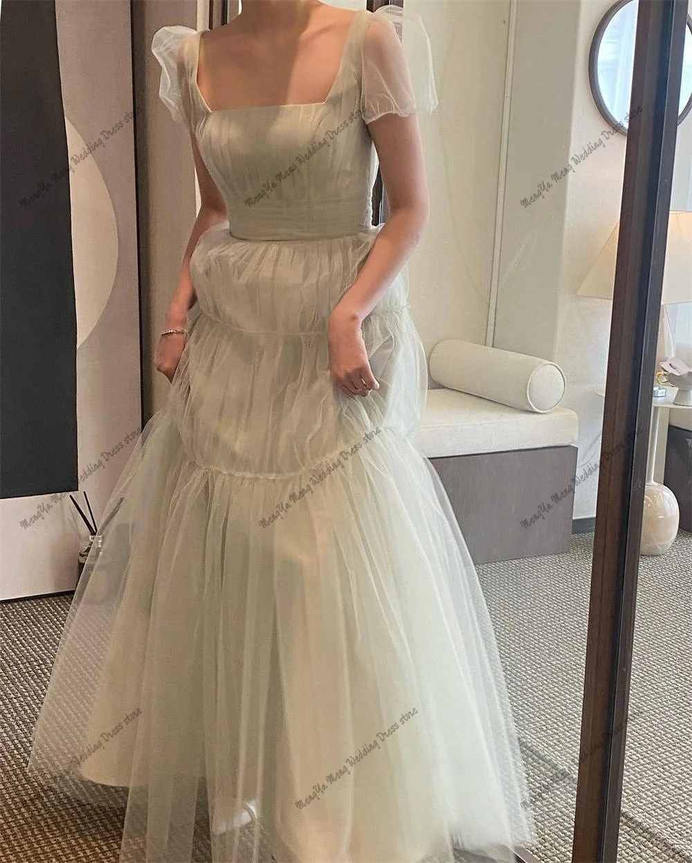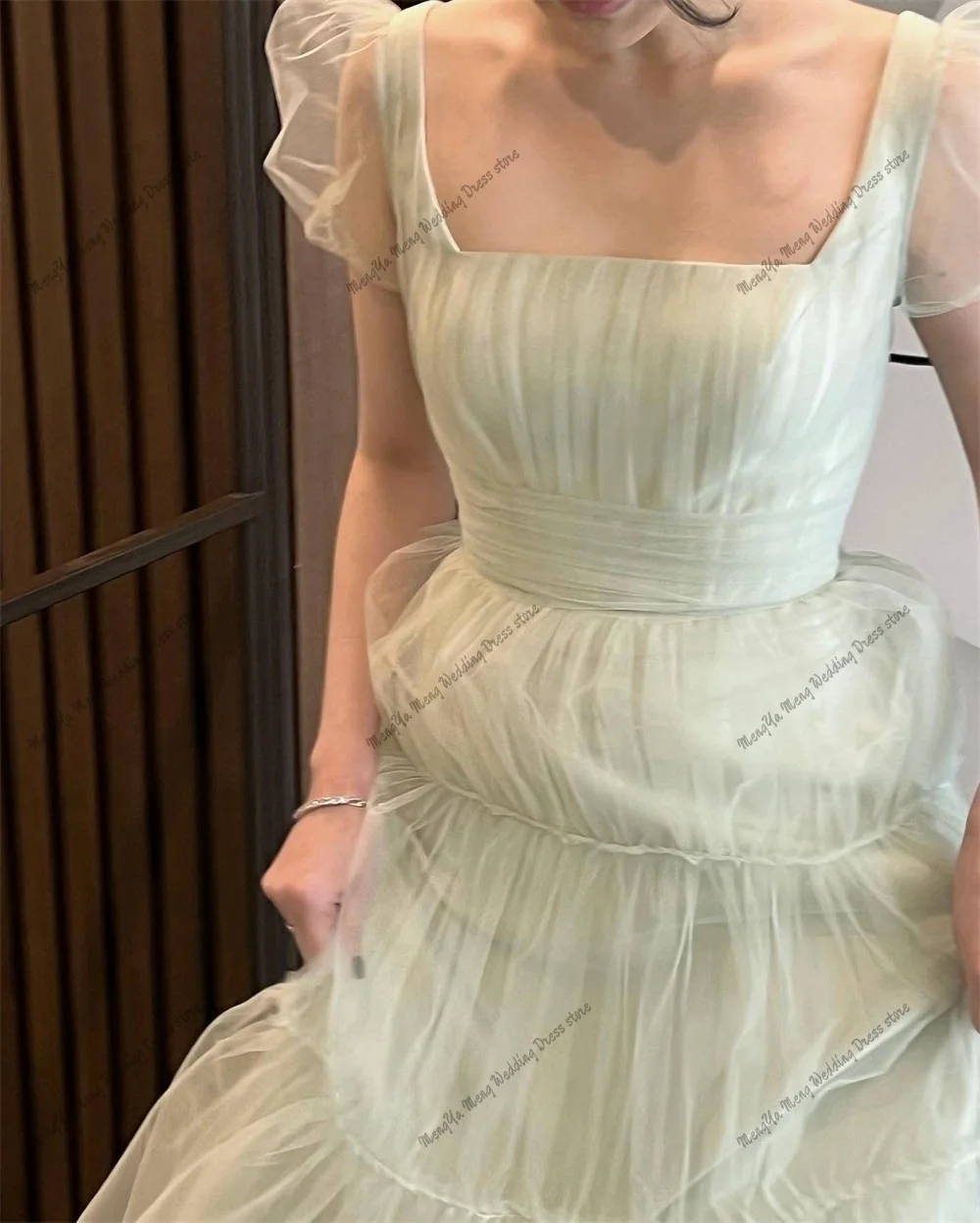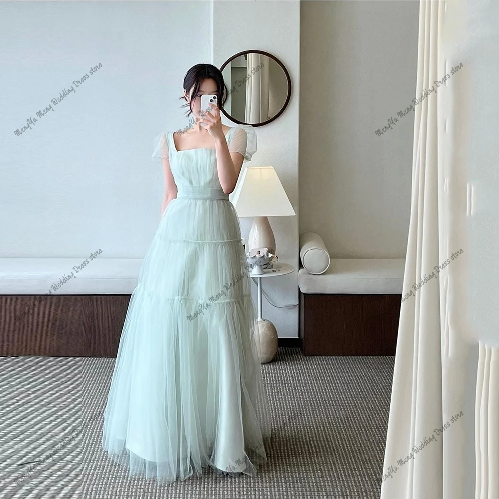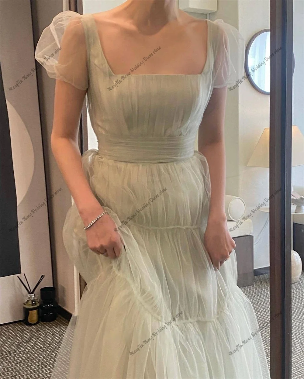 Fairy Tulle A-Line Wedding Dresses Korean Photo shoot Puff Short Sleeves Prom Dresses Floor Length Bridal Party Dress Customized