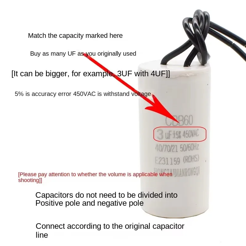 aliexpress , ali , shop , ali shop , online , store , online shop , online store , buy , sell , Motor Run Capacitors CBB60 450V AC Starting Capacitor 5% 3/4/5/6/8/10/12/14/15/16/18/20/25/30/40/45/50/60UF for Washing Machine