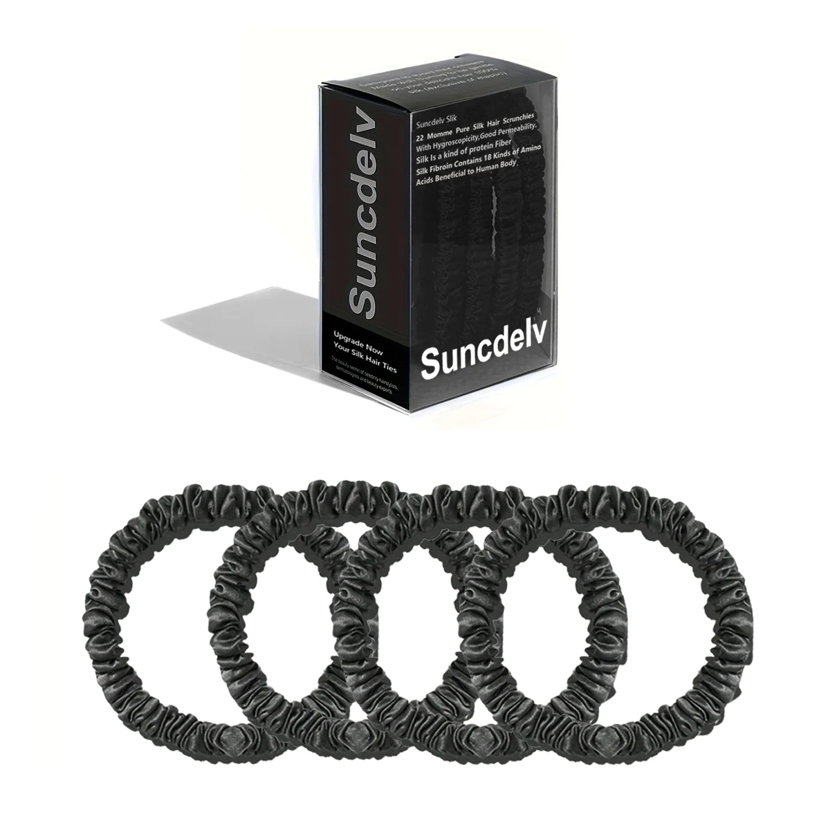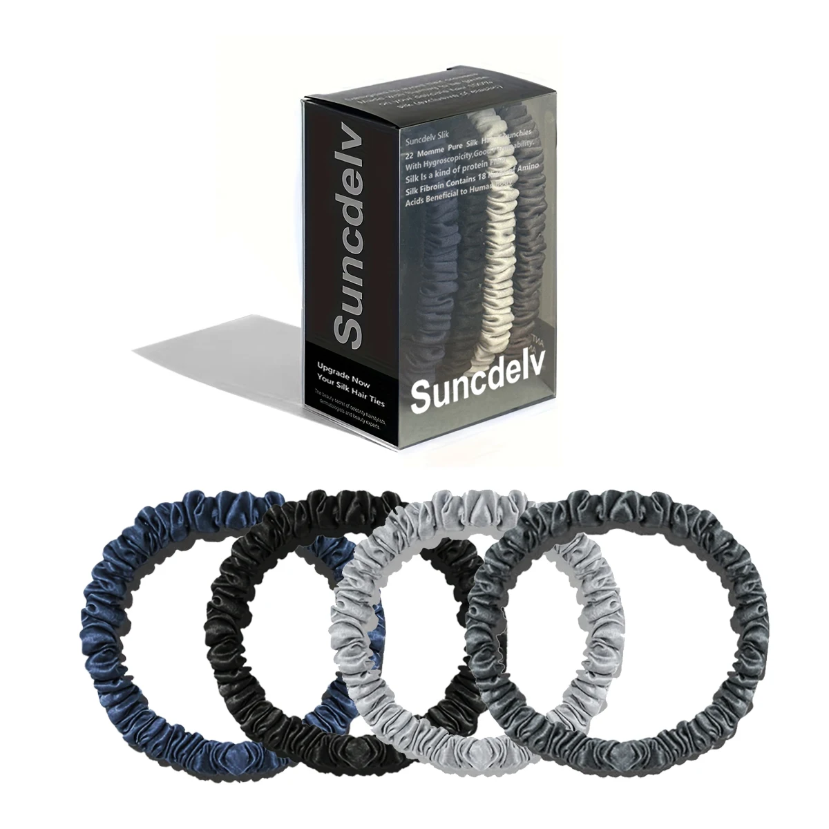 100% Natural Silk Solid Color Hair Ties High Quality Hair Scrunchies (22Momme) Women Big Hairbands Hair Accessories(4PCS Box)