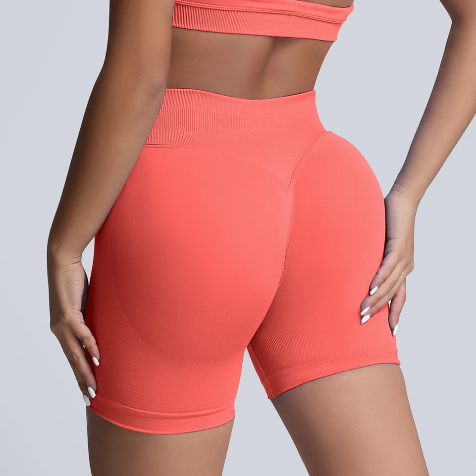 No Logo Women Sports Shorts 4.5'' Low Ribbed Band Seamless Yoga Shorts Scrunch Bum Gym Workout Biker Short Sports Leggings