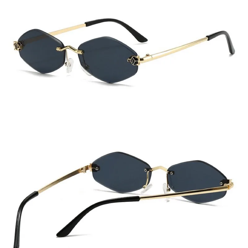 Frameless Cut Edge Sunglasses Diamond Shaped Personalized Leopard Sunglasses UV Resistant Small Frame UV400 Sunglasses New