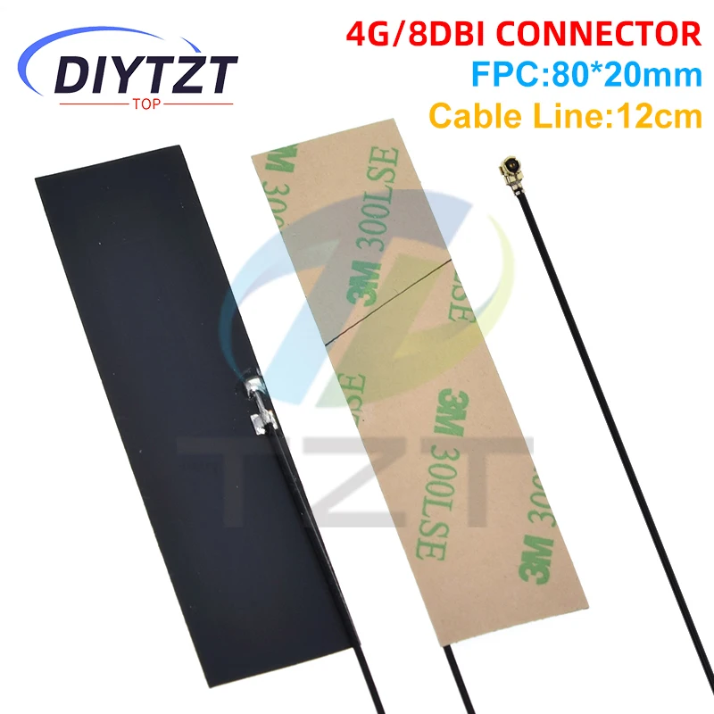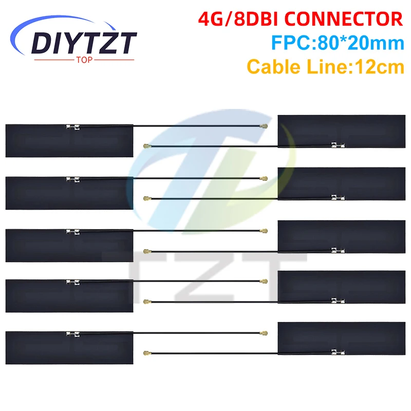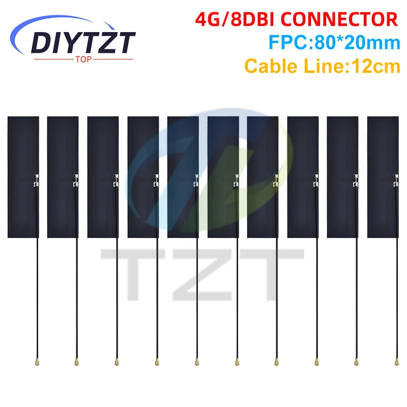DIYTZT 10pcs GSM GPRS 2G 3G 4G LTE internal antenna 8dbi FPC connector 80*20mm wireless modem aerial 8cm Long connector