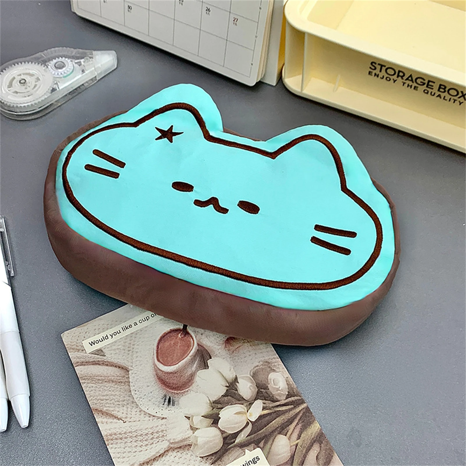 Kawaii Cat Plush Stationery Bag Portable Pencil Case Aesthetic Stationery Bag Suitable for Capybara Lovers Gifts