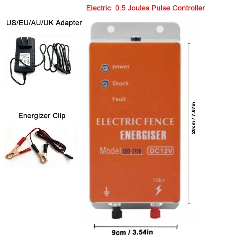 DC 12V 0.5- 1 joule electric fence energizer for animal cattle farm poultry solar power charger fencing controller