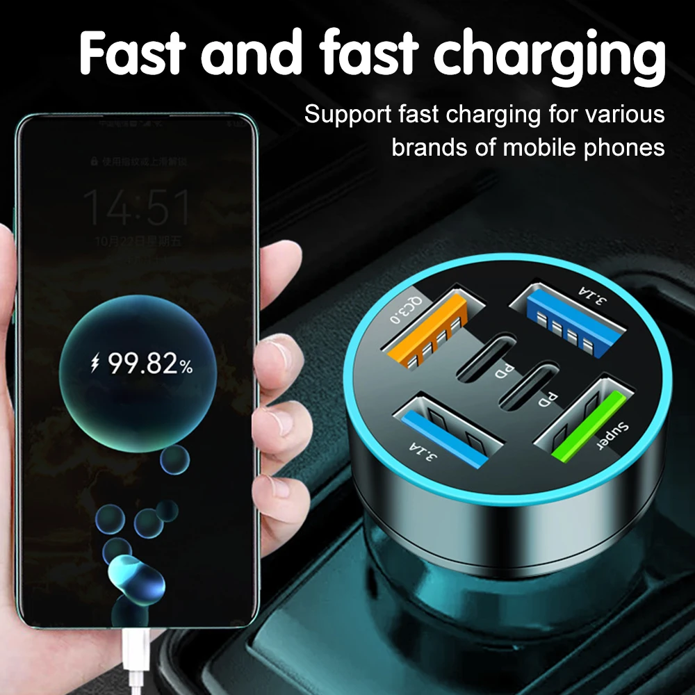 250W 5 Ports Car Charger Fast Charging PD QC3.0 USB C Car Phone Charger Adapter With Voltage For iPhone Samsung Huawei Xiaomi