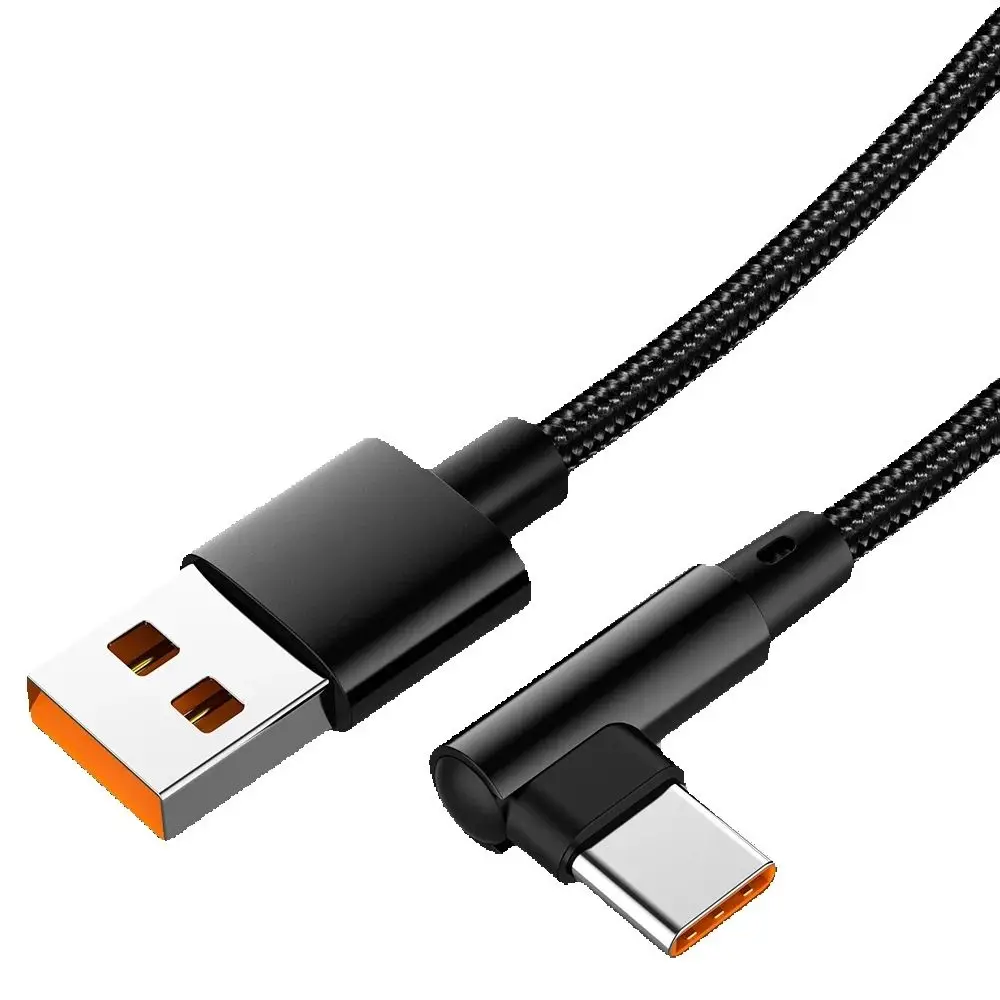 66W Type-C Fast Charging Data Cable USB 90 Degree Elbow Nylon Braided Wire Quick Charge Cord For Oneplus Xiaomi Samsung Realme