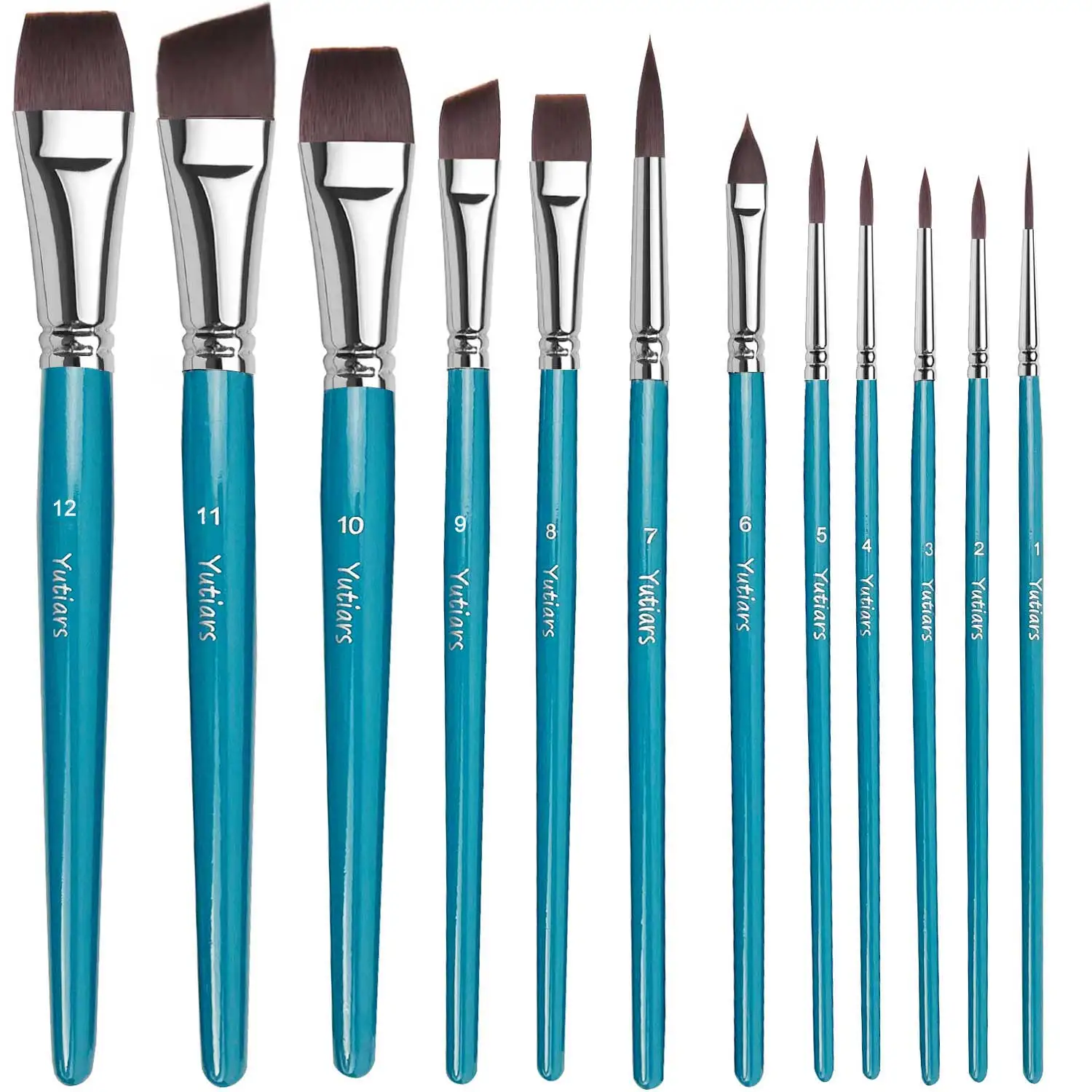 12pcs Professional Face Painting Brush Set with Nylon Bristles, Wooden Handle, Versatile for Watercolor & Embossing
