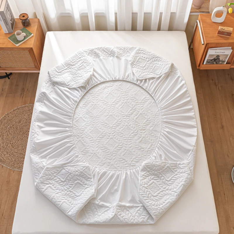 2025 new simple solid color washed cotton waterproof padded fitted sheet, No pillowcase, household mattress protective cover