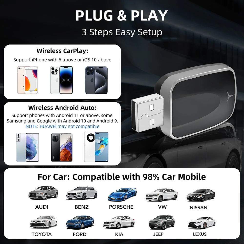 aliexpress , ali , shop , ali shop , online , store , online shop , online store , buy , sell , 2 in 1 AI Box Mini Adapter Wired to Wireless Carplay&Android Auto Compatible with 99% of Cars Plug and Play WiFi Smart Dongle