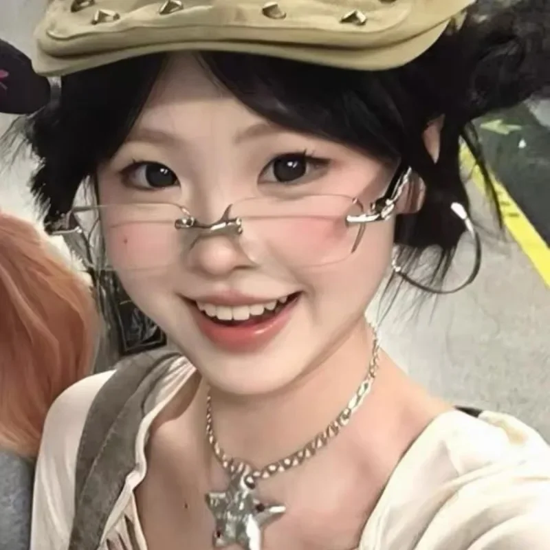 2025 Y2K Women's Retro Square Frame Glasses for Girls Japanese Harajuku Glass Eyewear Rimless Computer Anti-blue Eyeglasses