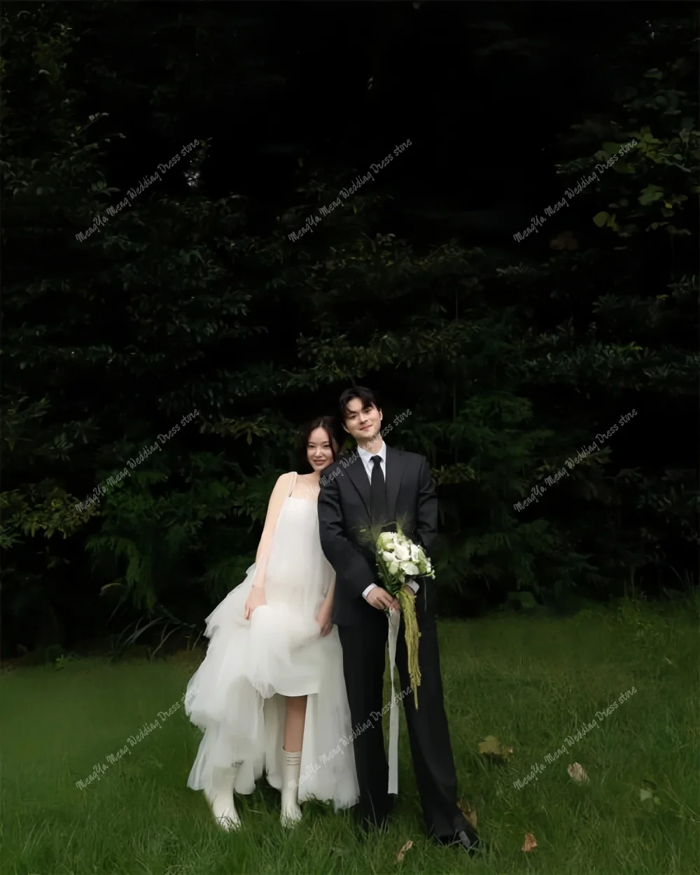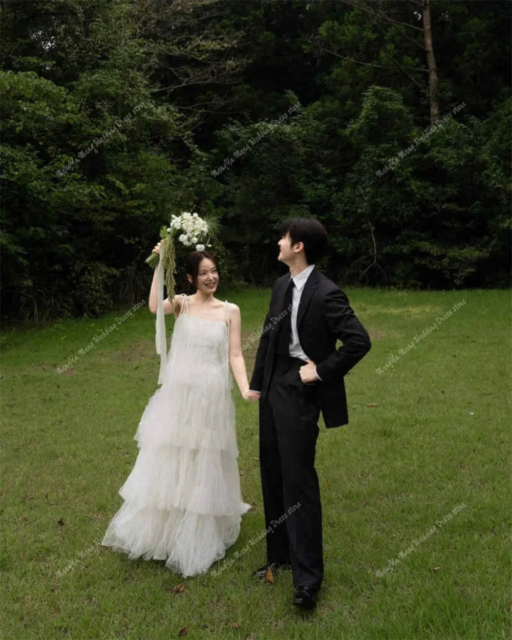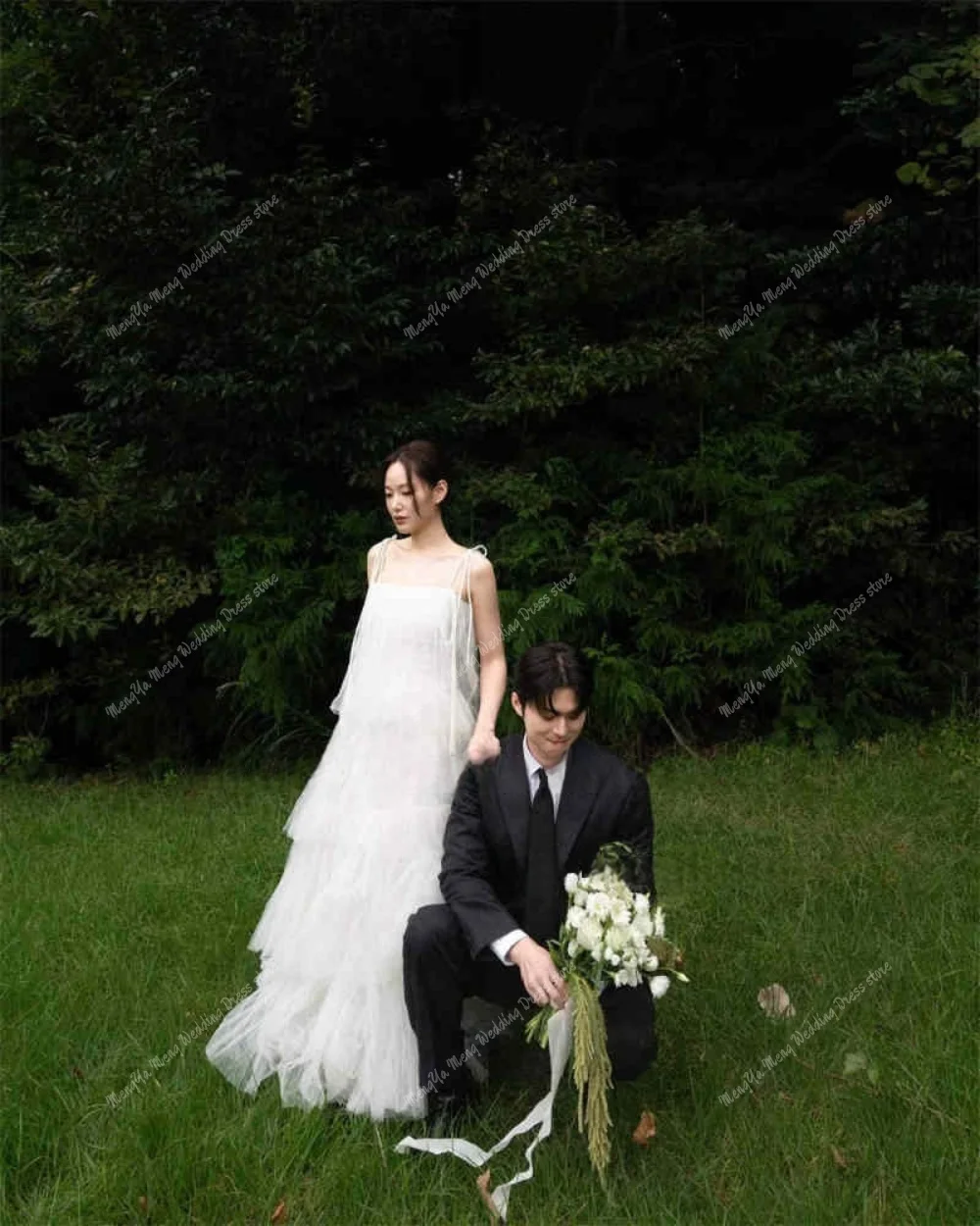 Customized Soft Layered Tulle Floor Length Wedding Dresses Korea Photoshoot Spaghetti Straps Bridal Gown Vestido De Noiva 2025