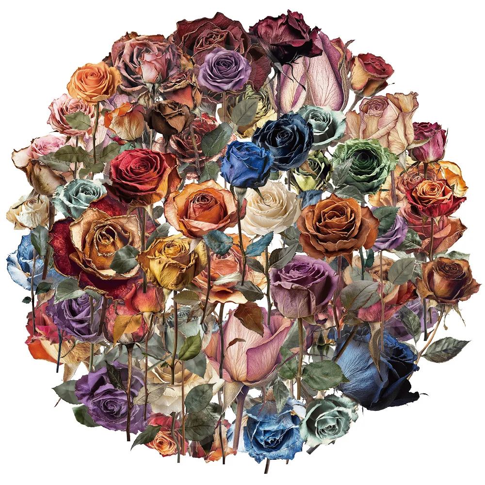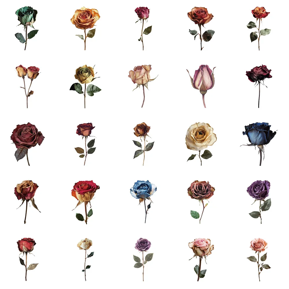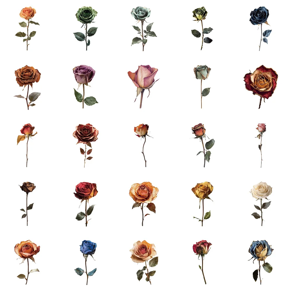 50PCS Dried Rose Decorative Graffiti Stickers DIY Luggage Notebook Skateboard Motorcycle PET Waterproof Stickers