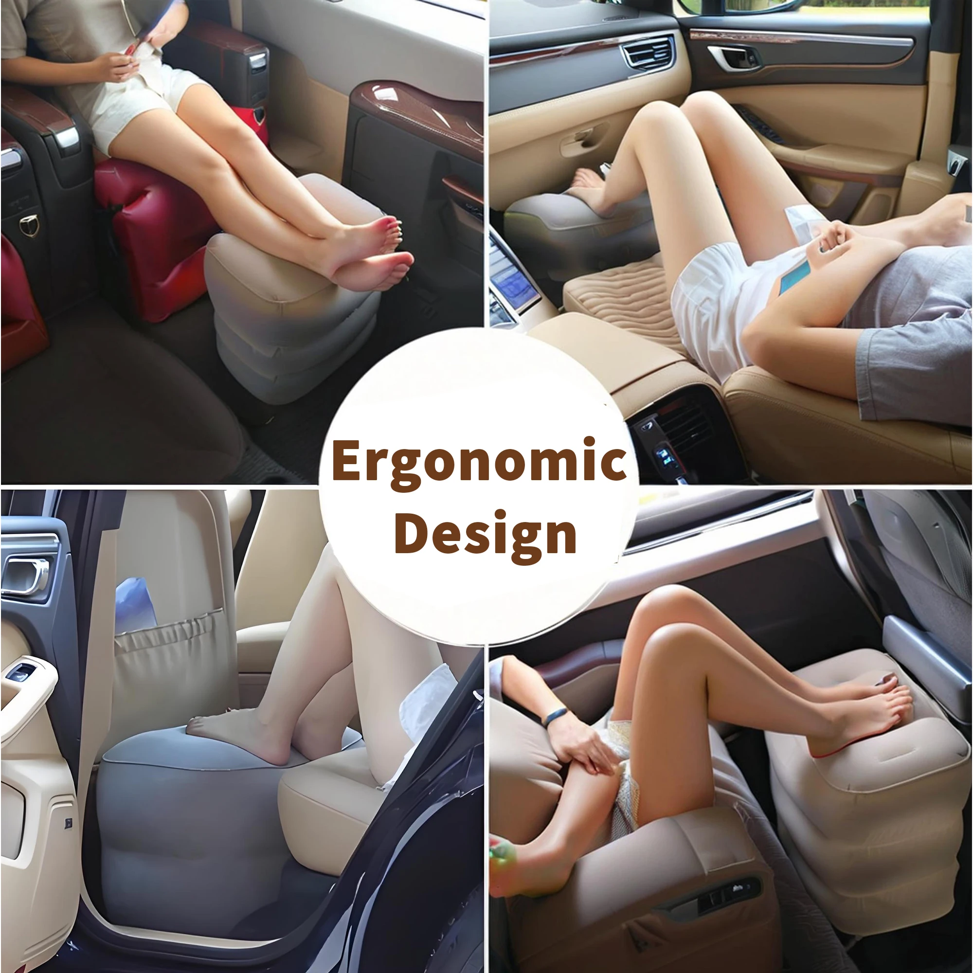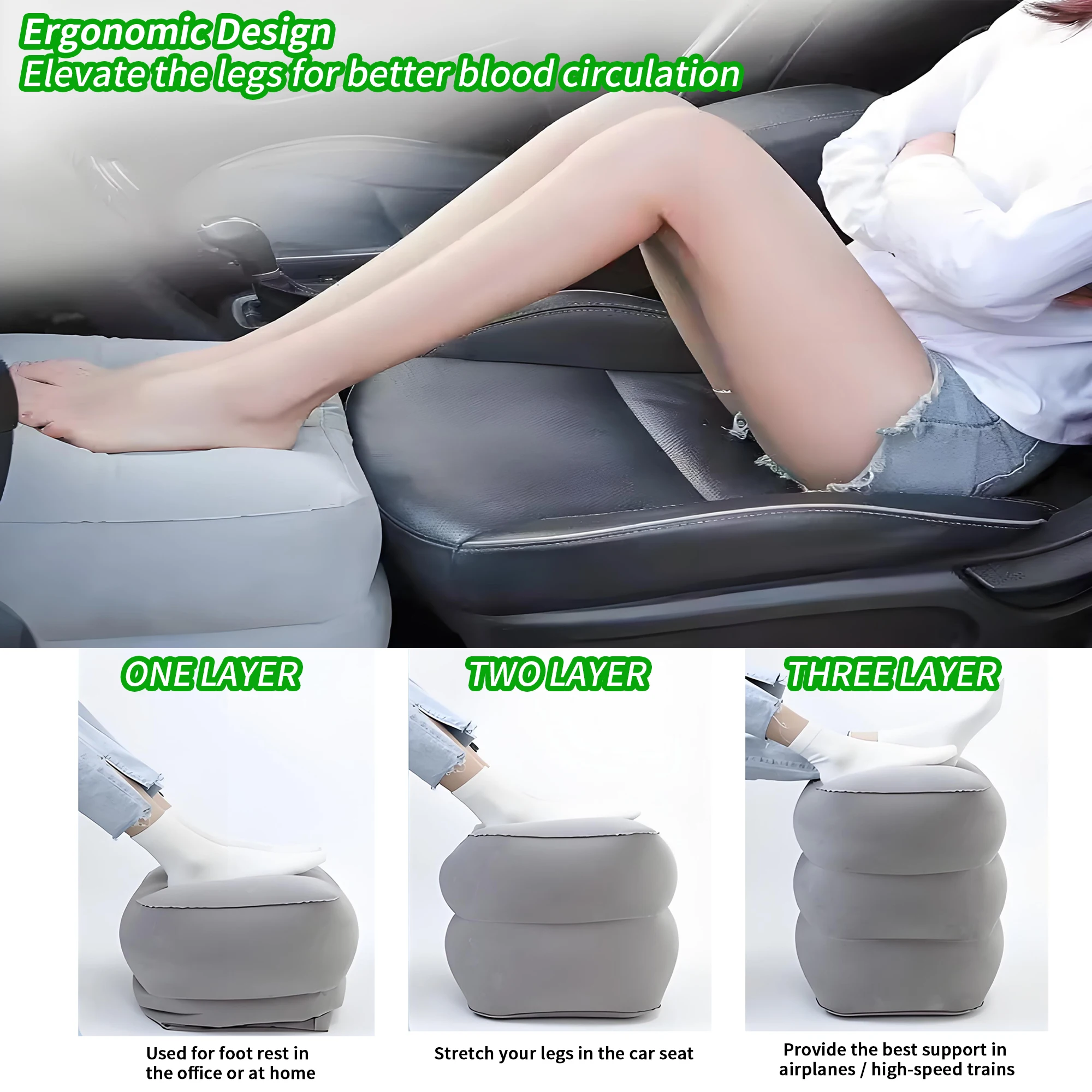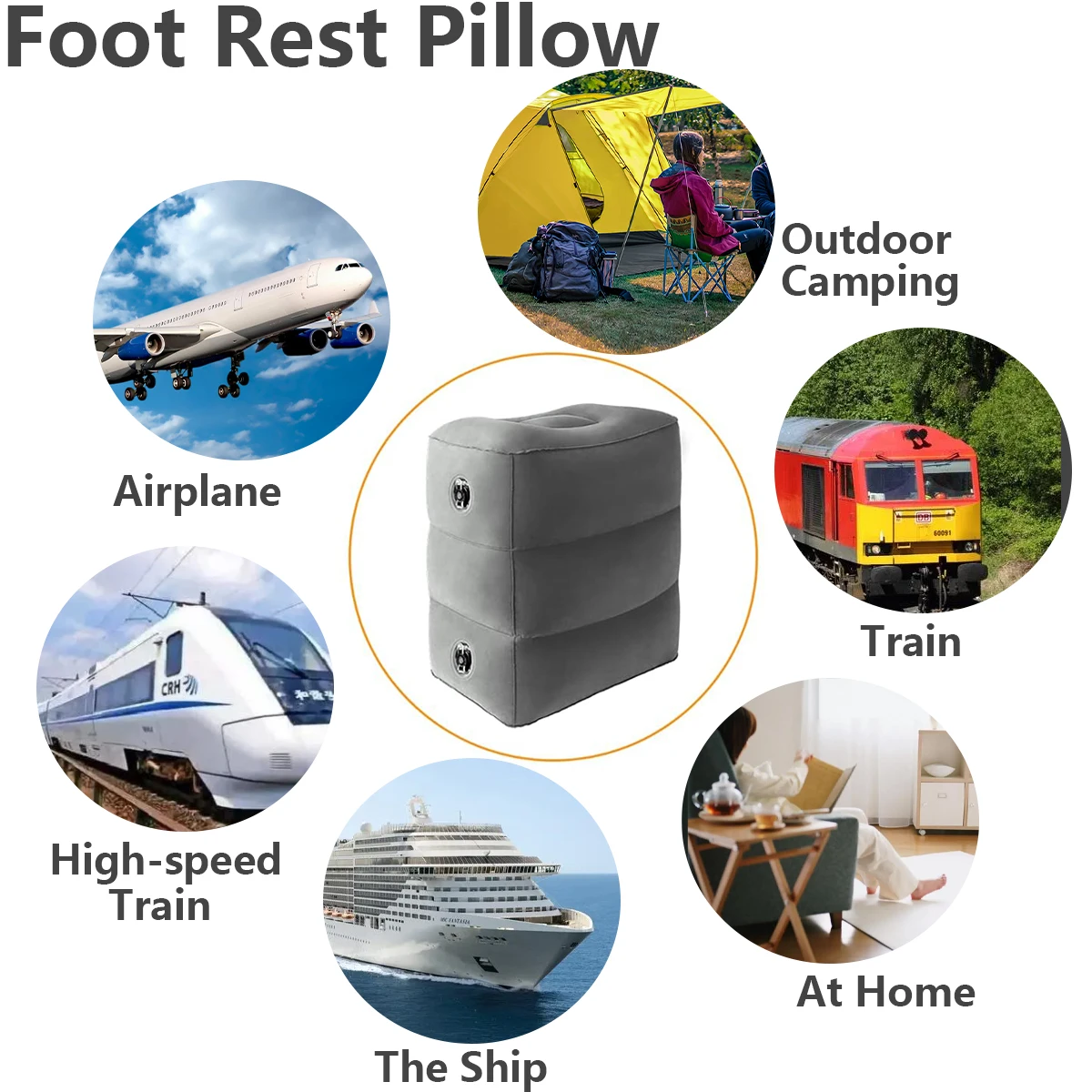 Inflatable Sleeping Foot Rest Pillow for Air Travel, PVC Adjustable 3-Layer Flight Footstool Cushion for Car Office