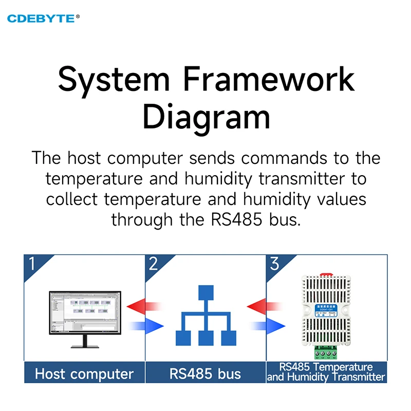 Temperature and Humidity Sensor RS485 Modbus RTU Protocol CDEBYTE EID041-G01/EID041-G01S DC5-36V High Precision Acquisition