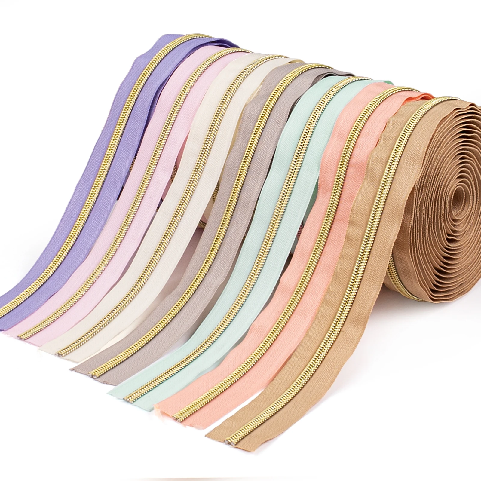 aliexpress , ali , shop , ali shop , online , store , online shop , online store , buy , sell , Contrast Color Zipper) Set = 4.5m Zipper + 10 Zipper Puller, Dopamine Color No. 5 Nylon Zipper, Contrasting Color Light Gold Teeth, Nylon Chain