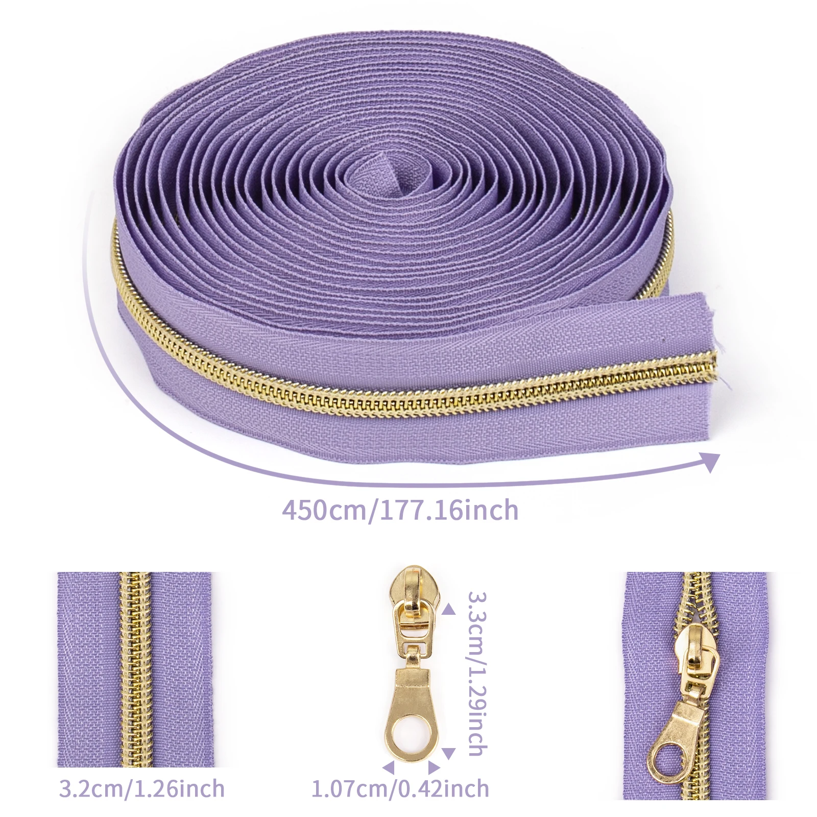 Contrast Color Zipper) Set = 4.5m Zipper + 10 Zipper Puller, Dopamine Color No. 5 Nylon Zipper, Contrasting Color Light Gold Teeth, Nylon Chain