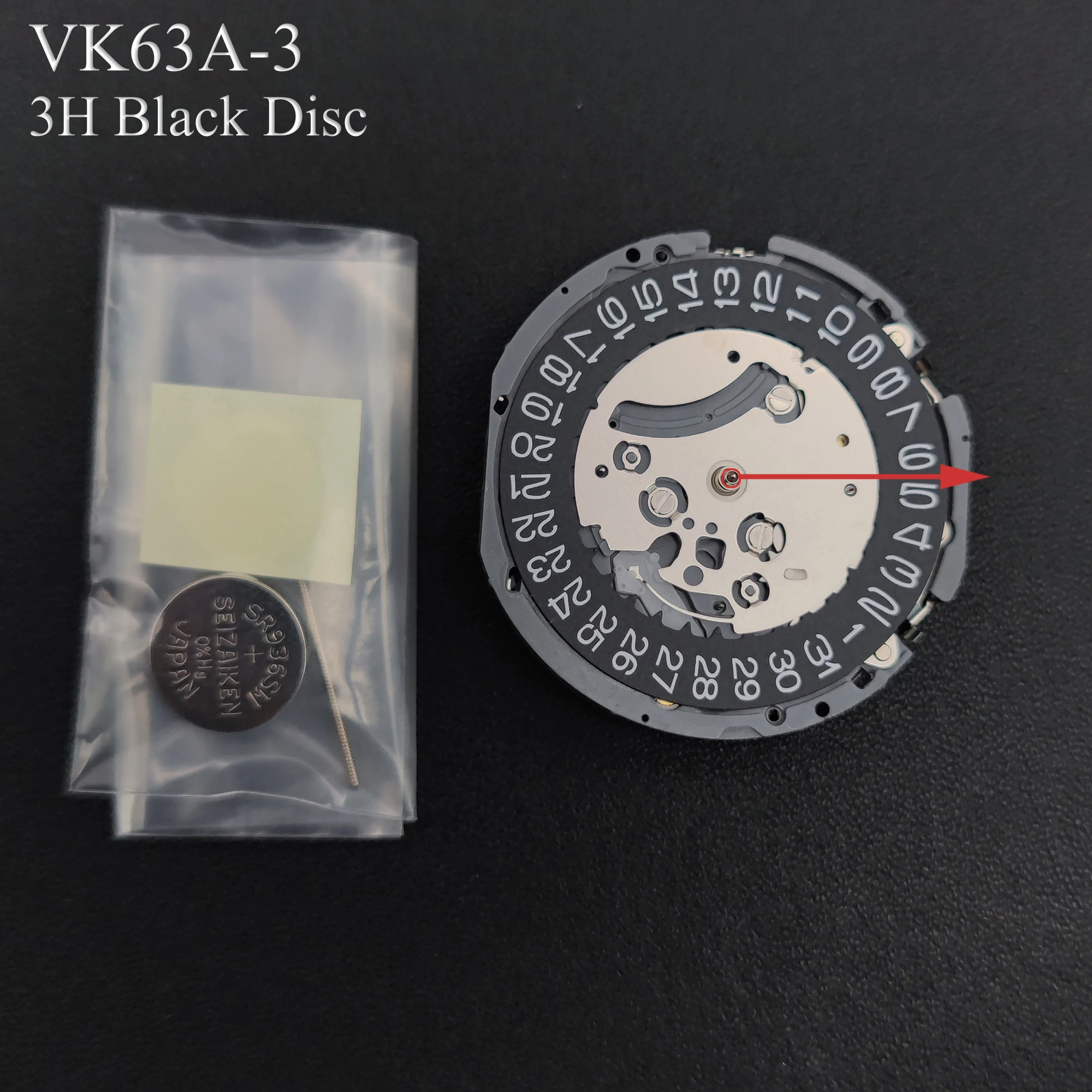 Japan Genuine VK63 VK63A Movement Black 3H Date/Disc Wheel Version Mod Chronograph Quartz Movement VK63A-3 with Battery