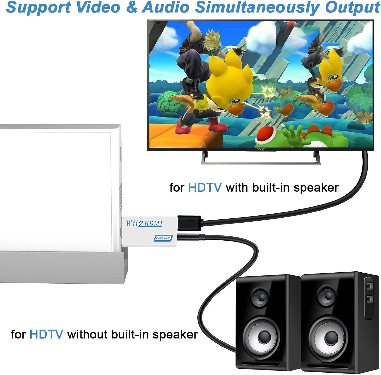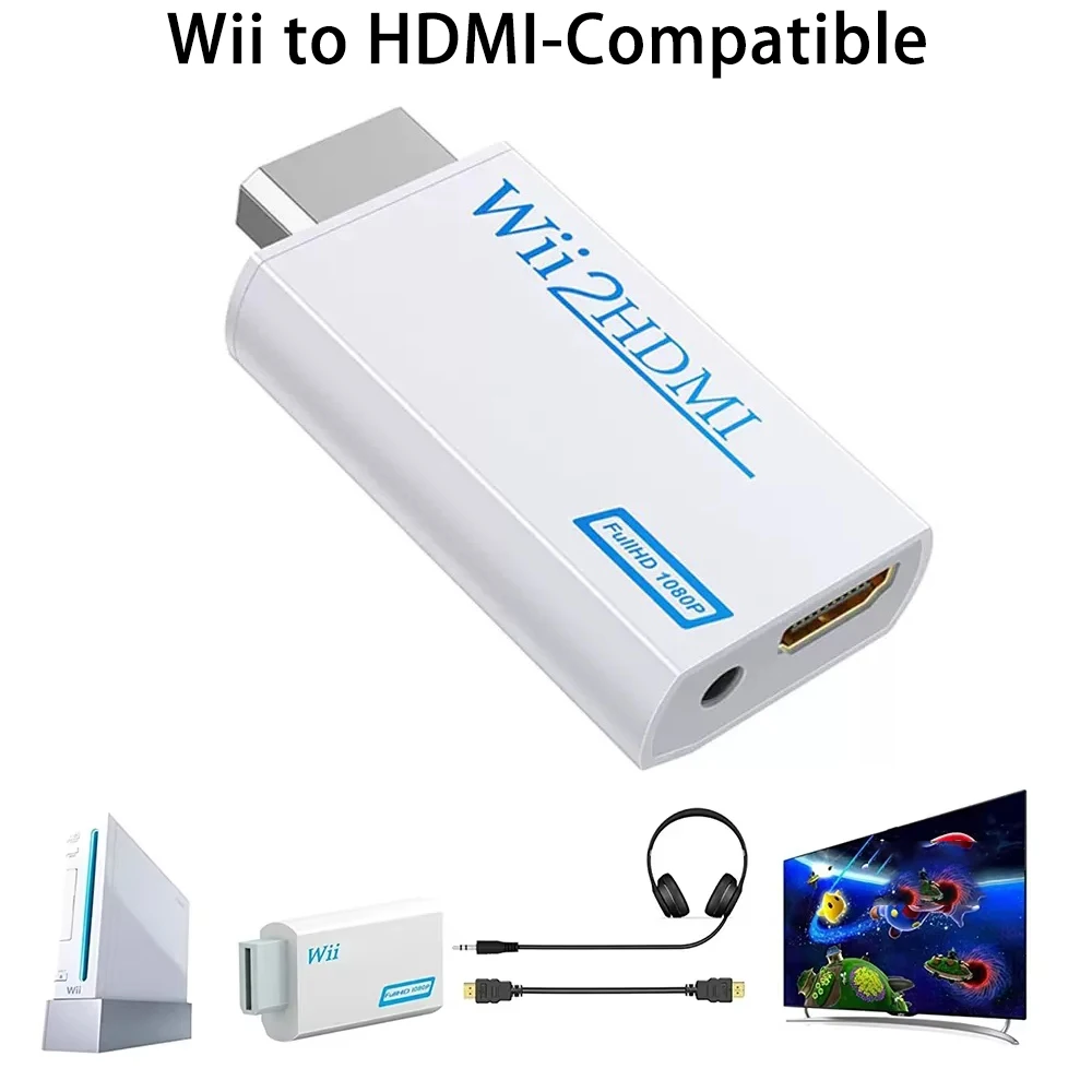 Wii to HDMI-Compatible Converter 1080P Full HD Adapter Connector 3.5mm Video Audio for PC HDTV Monitor Wii2HDMI-Compatible 720P