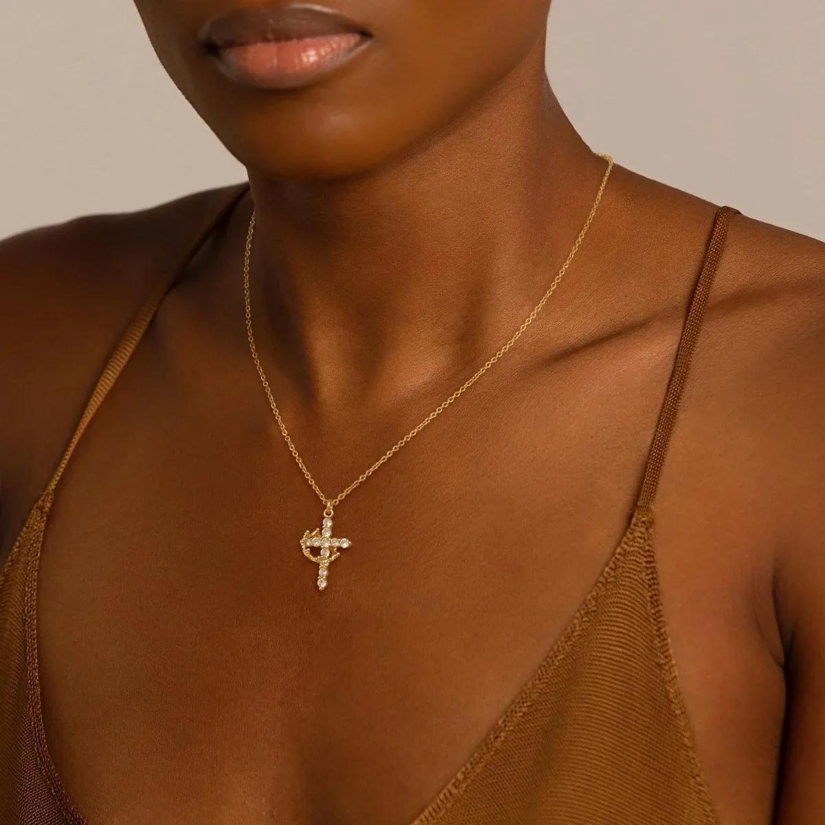 aliexpress , ali , shop , ali shop , online , store , online shop , online store , buy , sell , Ladies' Diamond Cross Necklace - Exquisite 14k Gold Cubic Zirconia Pendant Necklace Simple Gold Cross Pendant Necklace