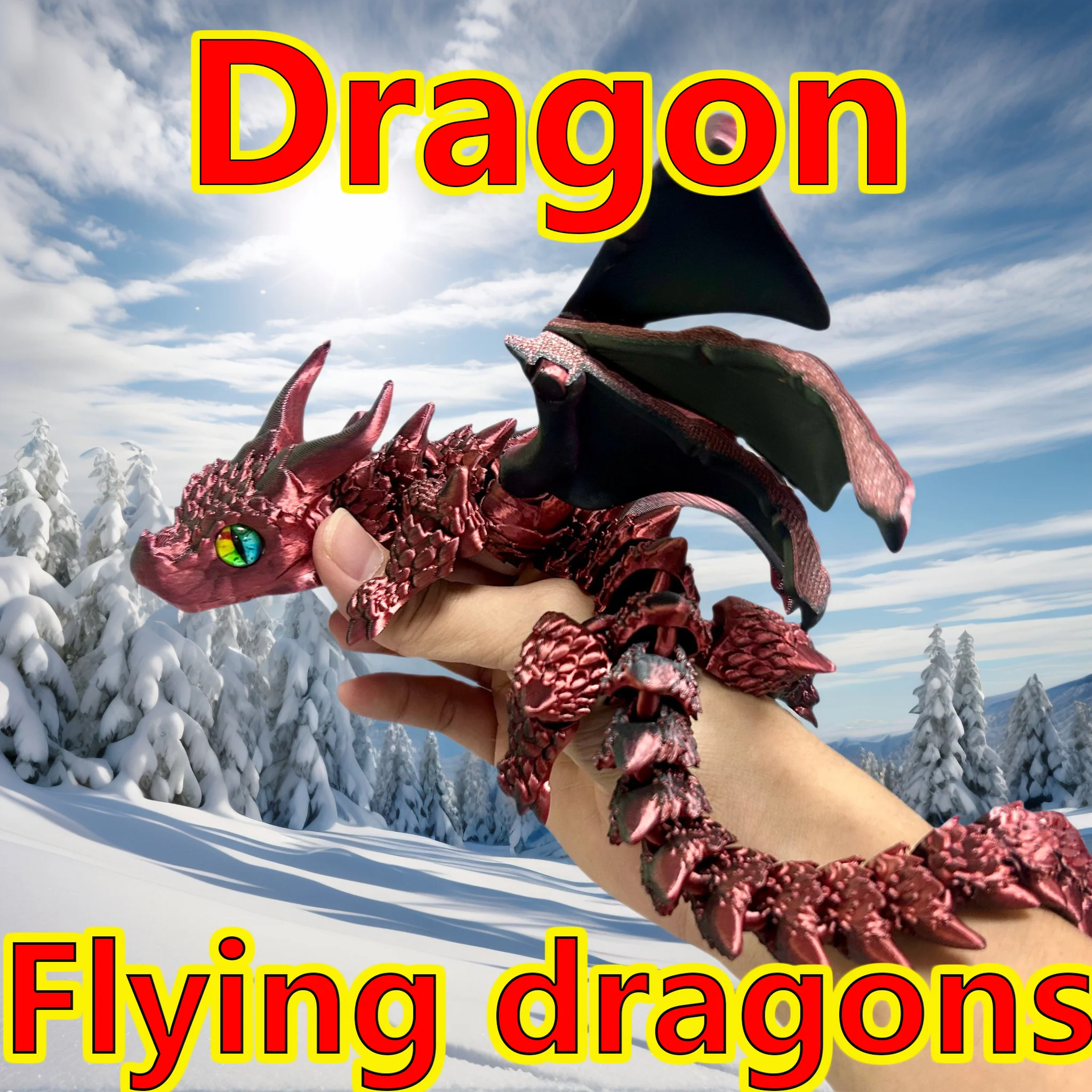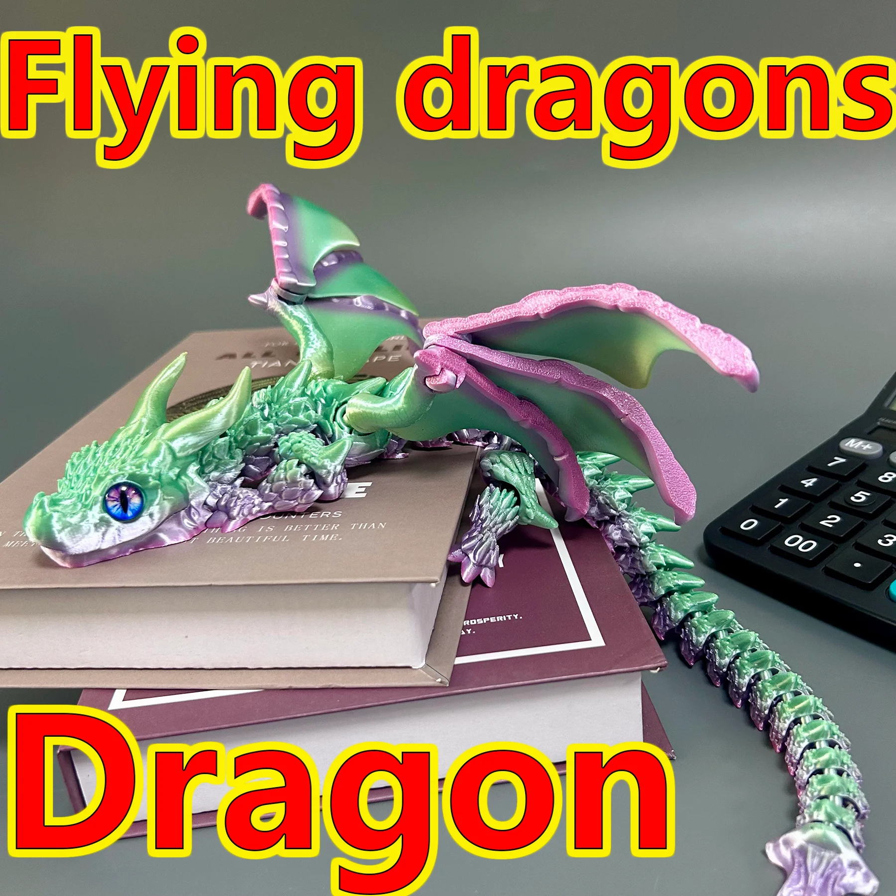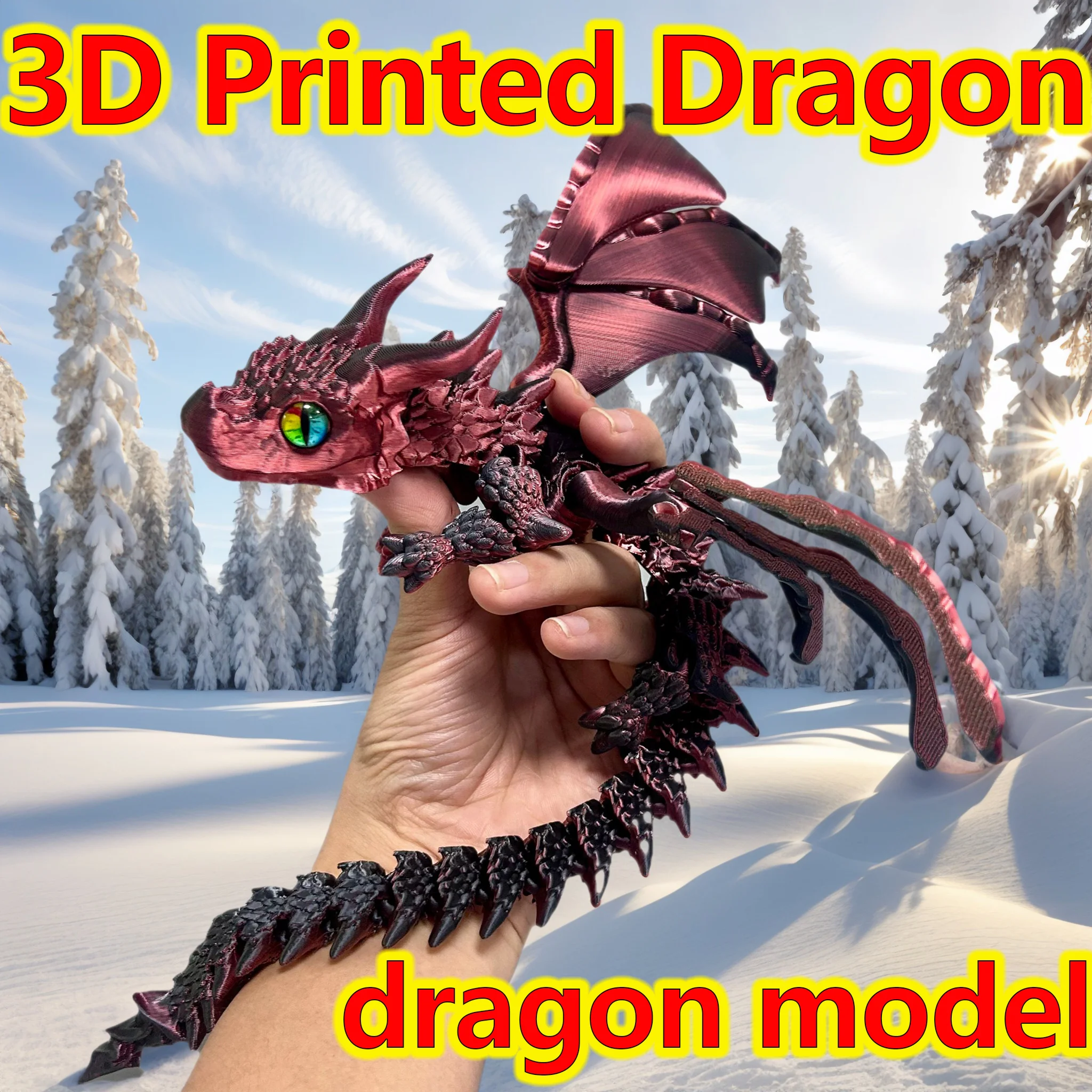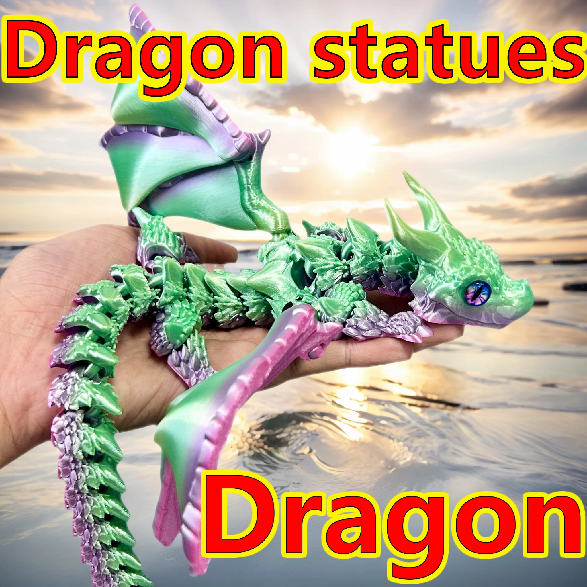 39.5Cm/15.55In 3D Printing Dragon Moveable Joints Animal Model Home Desktop Decoration Ornaments Gifts Collection Figurines