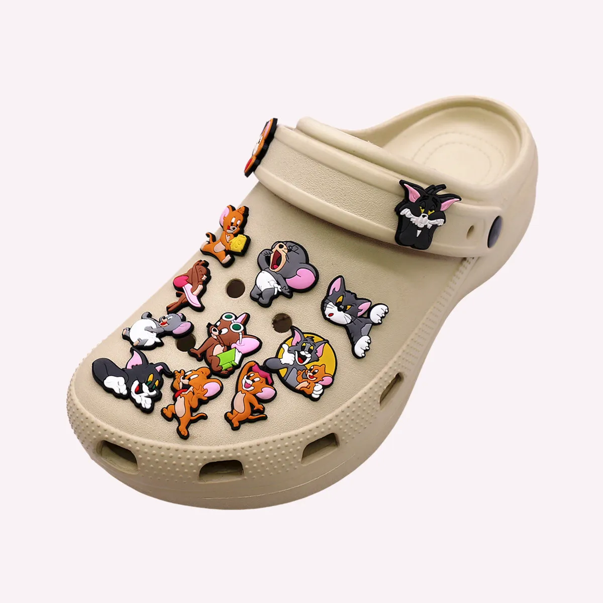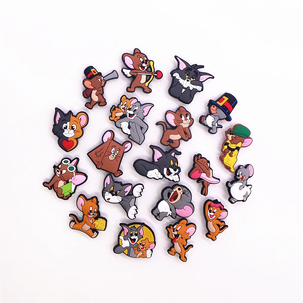 MINISO 1pcs Tom and Jerry Shoe Charms Funny Cat Rat Sandals Decorations Accessories Clog Pin for Bracelet Beach Bag Friend Gifts